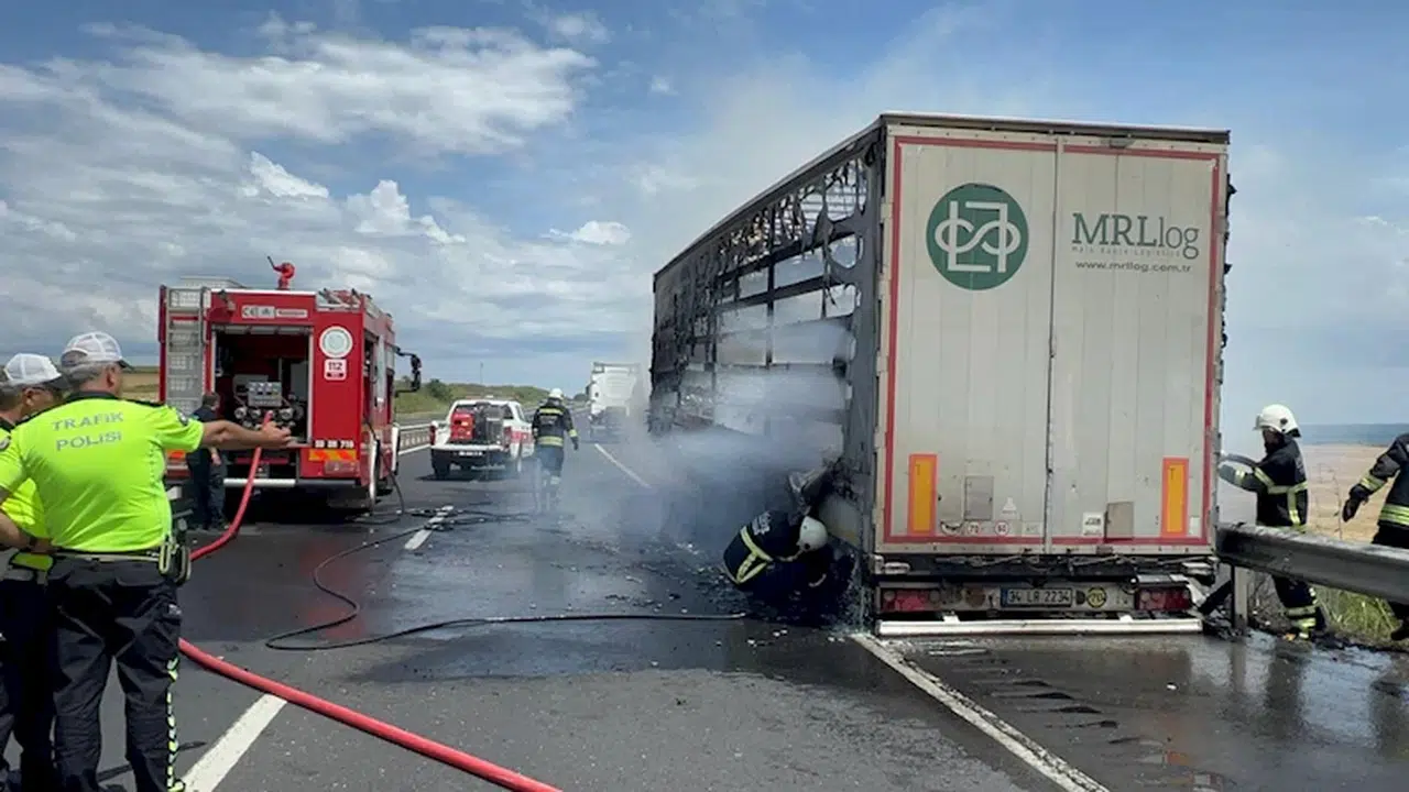 Tekirdağ'da alev alan TIR'ın dorsesi yandı