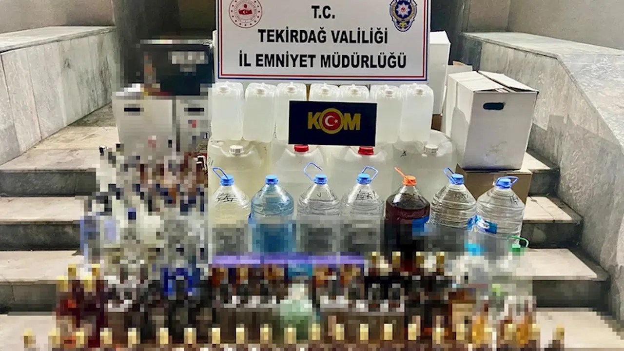 Çorlu İlçe Emniyet Müdürlüğü ekiplerinin sahte ve kaçak içkiye yönelik çalışmasında, bir depo ile araçta arama yaptı. Aramada, el yapımı 143 şişe rakı, votka viski, 12 litre viski, 158 litre rakı, votka, 98 litre etil alkol, 25 litre çeşitli aroma, el yapımı içki üretiminde kullanılan 4,5 litre aroma, 1062 cinsel içerikli hap, çok sayıda bandrol, şişe kapağı, kapüşon, etiket, 1010 boş şişe ele geçirildi.