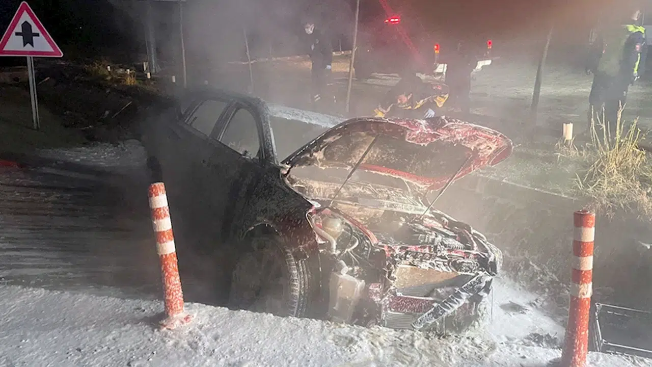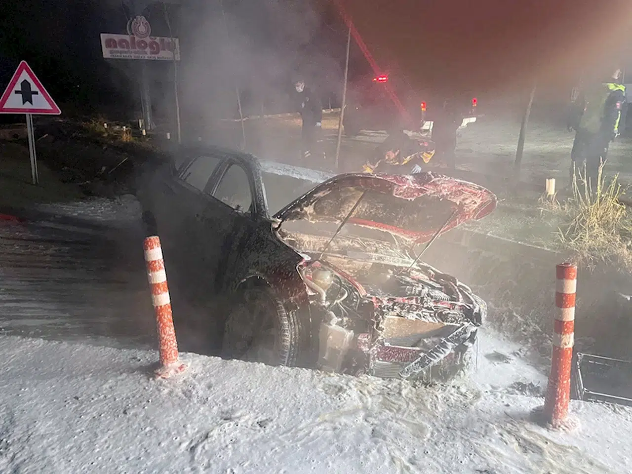 Tekirdağ'da takla atıp alev alan otomobilin sürücüsü öldü