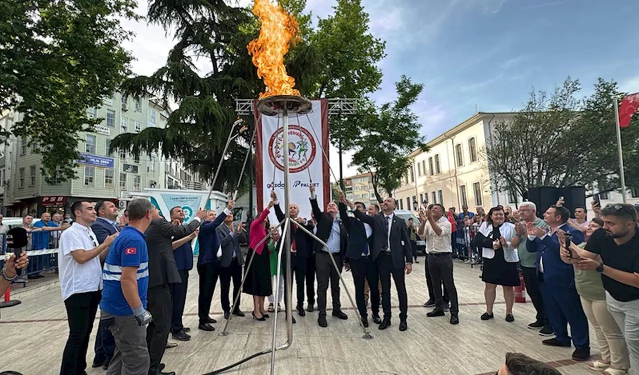 Tekirdağ Valiliği önünde Atatürk Anıtı’na çelenk sunulmasının ardından festival ateşi yakıldı.
