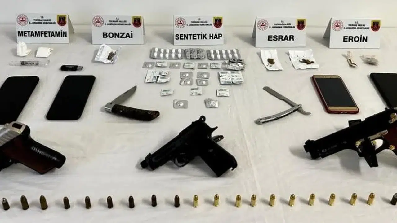Aramalarda, 1 gram eroin, 2 gram esrar, 1 gram metamfetamin, 2 gram bonzai, 52 sentetik hap, uyuşturucu madde kullanım aparatı, 3 ruhsatsız tabanca, 2 bıçak, 22 mermi ele geçirildi.