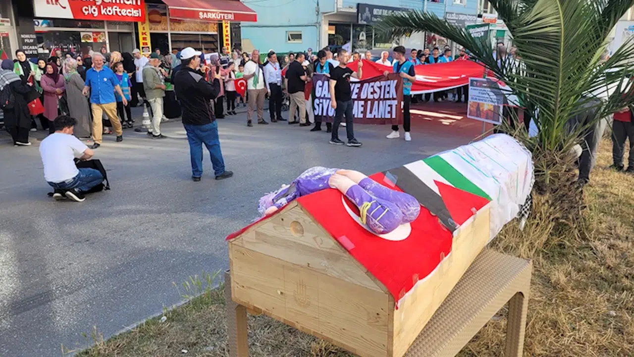 Tekkeköylüler, İsrail'in Filistin'e saldırılarını "tabutlu yürüyüş" ile protesto etti