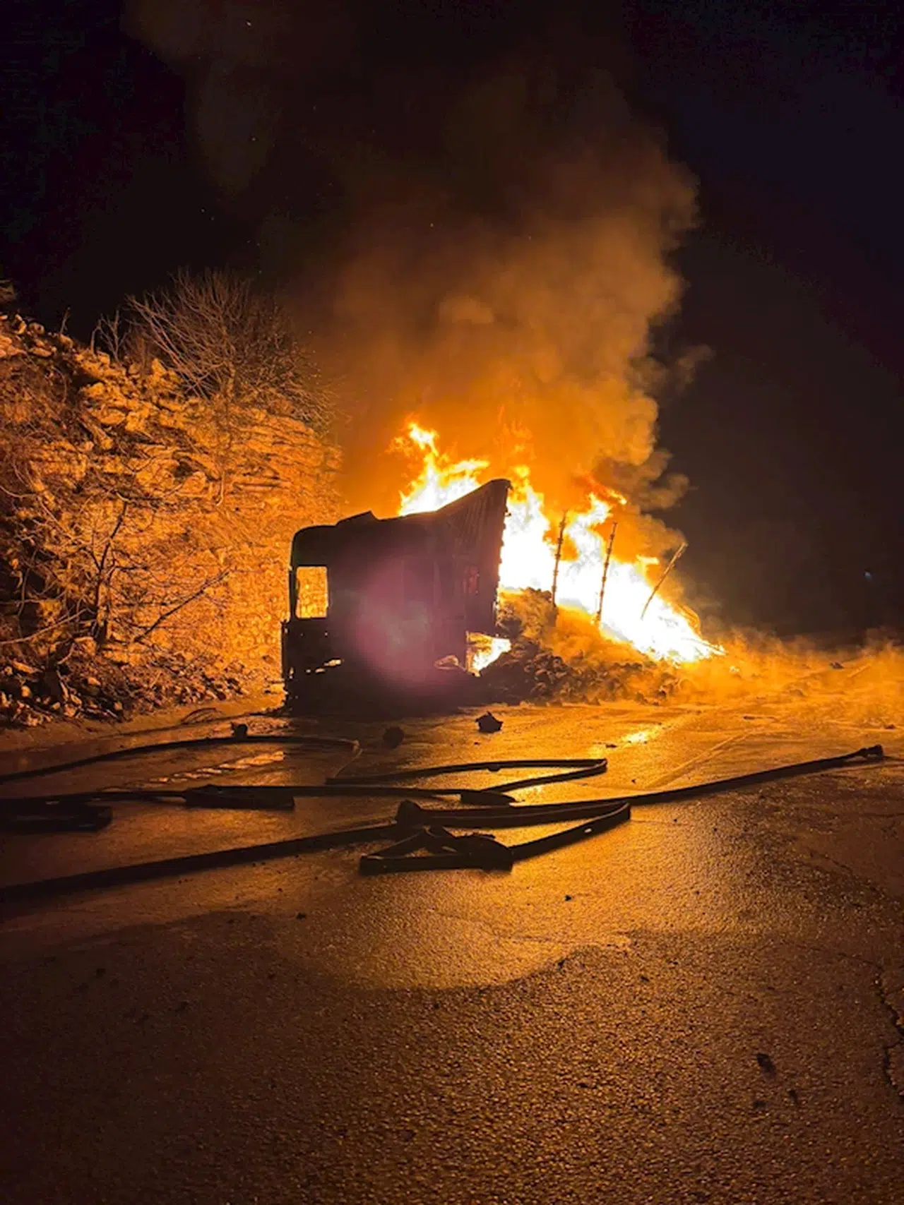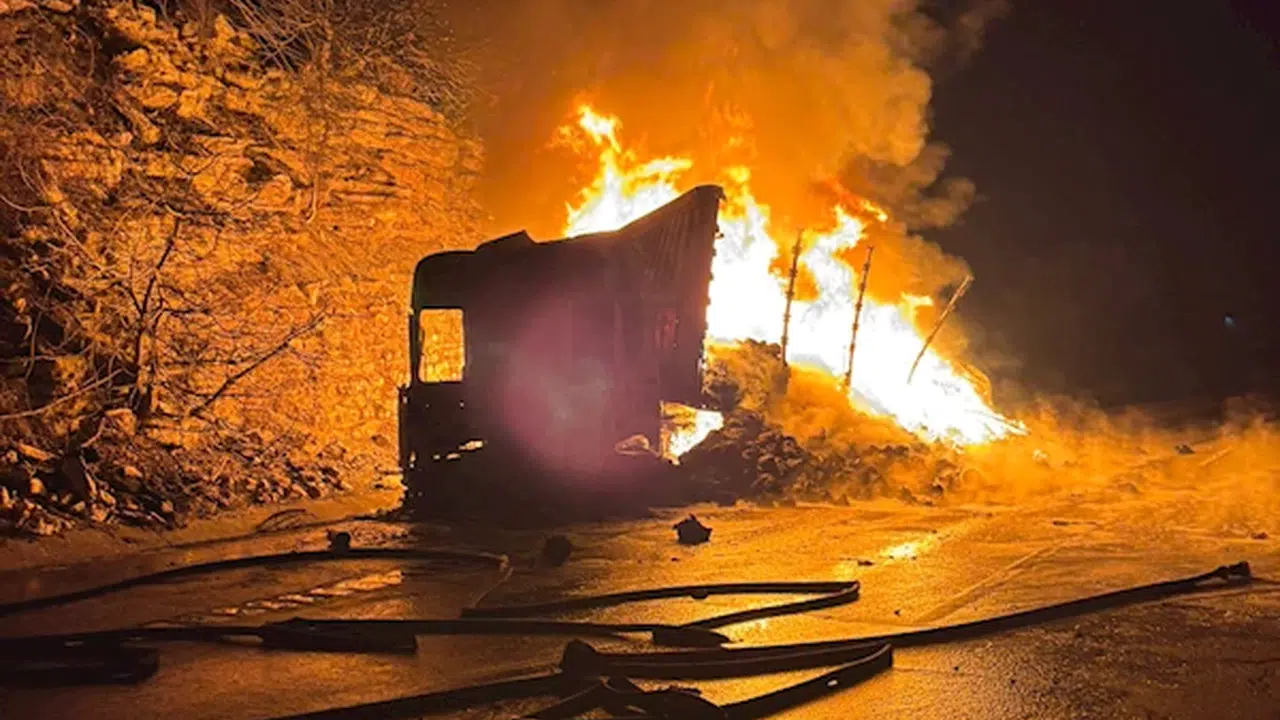 Tekstil malzemesi yüklü TIR, alev alev yandı