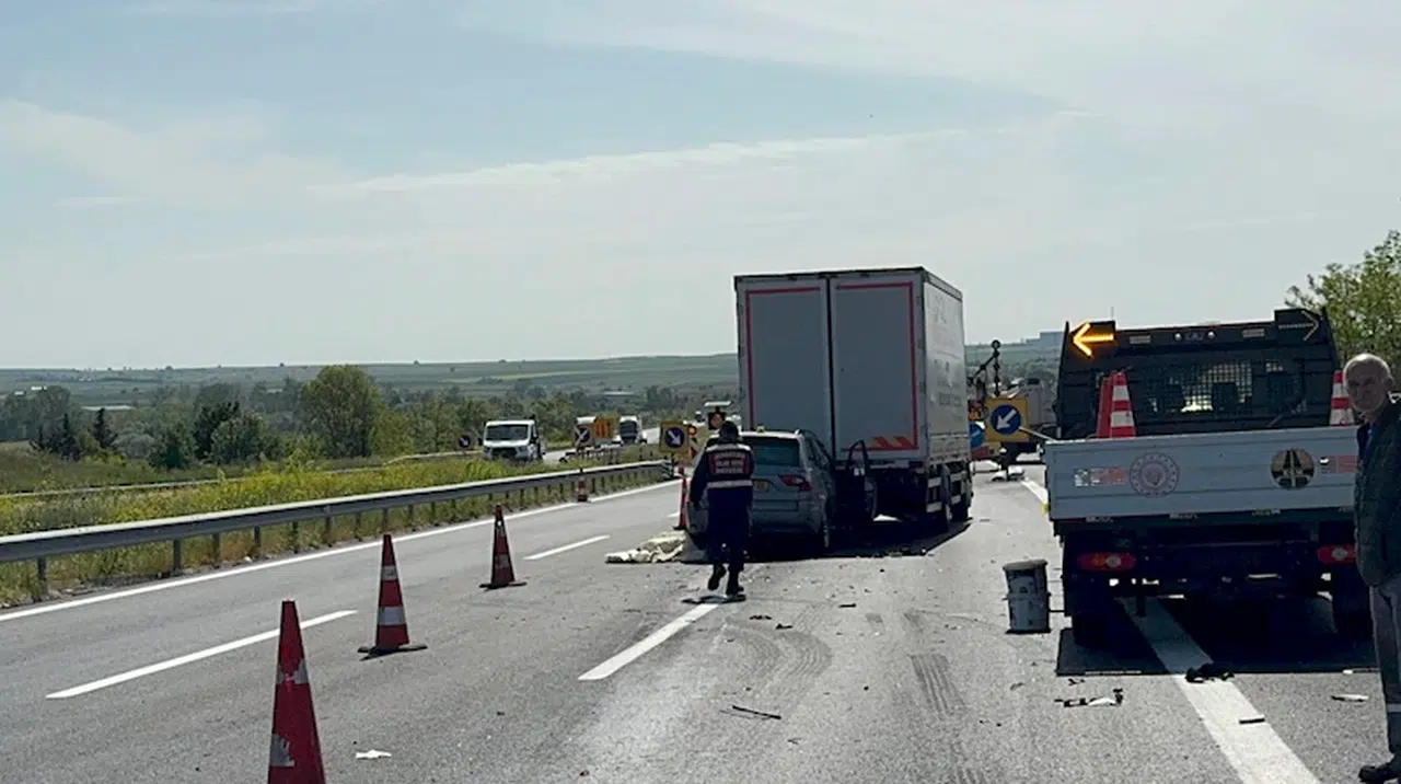 Kaza, TEM Otoyolu'nun Ergene ilçesi gişeler mevkisinde meydana geldi. İstanbul istikametine giden N.D., yönetimindeki 47 SF ZL Hollanda plakalı cip, önünde ilerleyen C.S.'nin kullandığı 59 TV 504 plakalı kamyona çarptı. Kamyonun altına giren cipte sürücü N.D, yanında bulunan eşi E.D. ve kamyon sürücüsü C.S., yaralandı. İhbarla bölgeye jandarma ve sağlık ekipleri sevk edildi. Yaralılar, ilk müdahalelerinin ardından Çorlu Devlet Hastanesi'ne kaldırıldı. Kazayla ilgili soruşturma başlatıldı. (DHA)