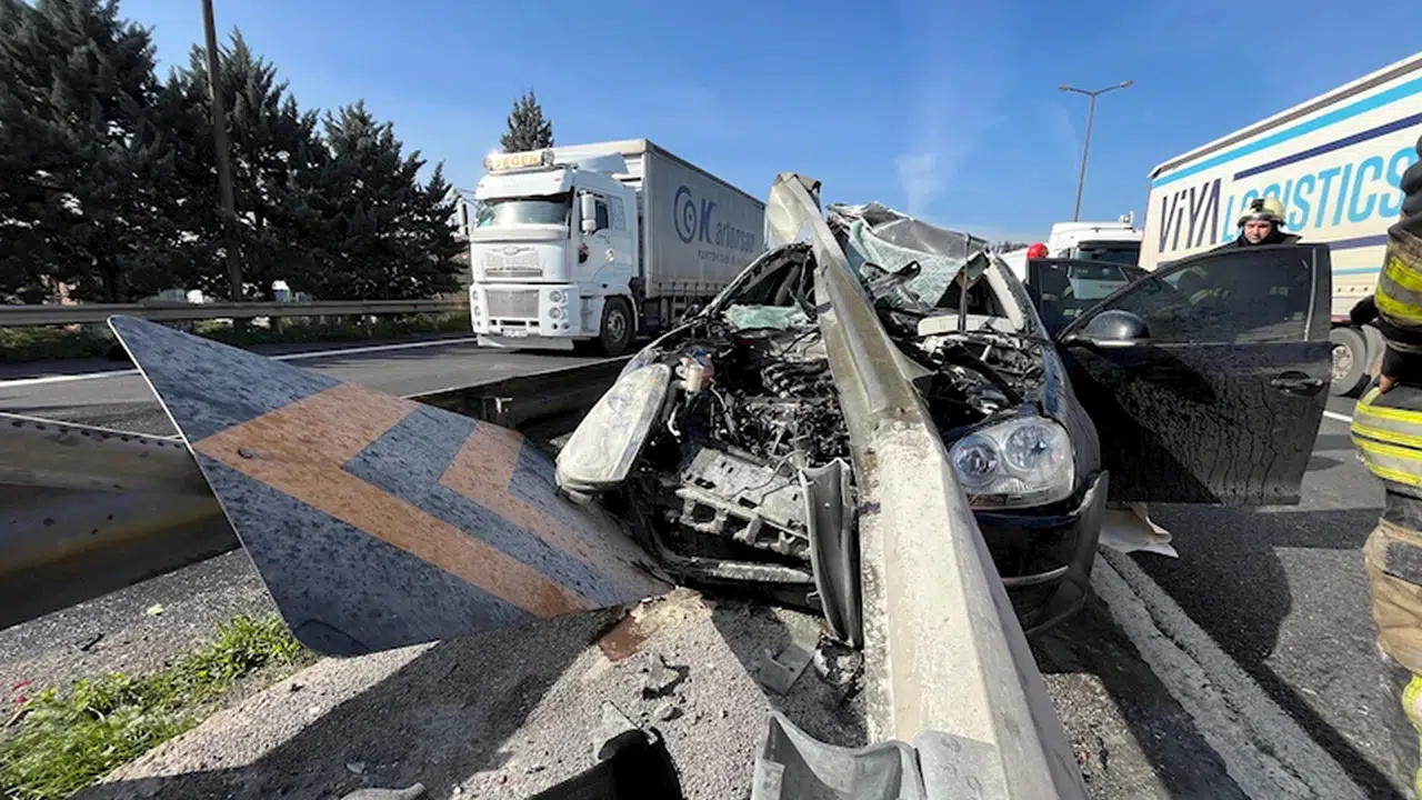 TEM’de, yol ayrımında otomobil bariyere çarptı: 1’i ağır, 4 yaralı