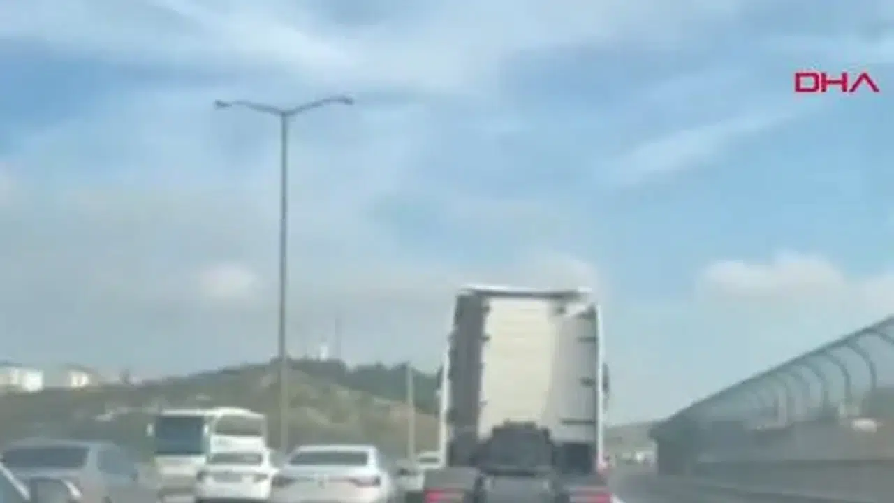 Olay, dün TEM Otoyolu Mahmutbey istikametinde meydana geldi. İddiaya göre, trafikte sollama yapmak isteyen yabancı plakalı TIR’a sol şeritte trafikt ilerleyen otomobil sürücüsü izin vermedi. Bunun üzerine TIR şoförü, aracını otomobilin üzerine sürdü. Trafikte bir süre devam eden inatlaşma, otomobil sürücüsünün TIR sürücüsüne yol vermesiyle sona erdi. O anlar başka bir sürücünün cep telefonu kamerasına yansıdı.