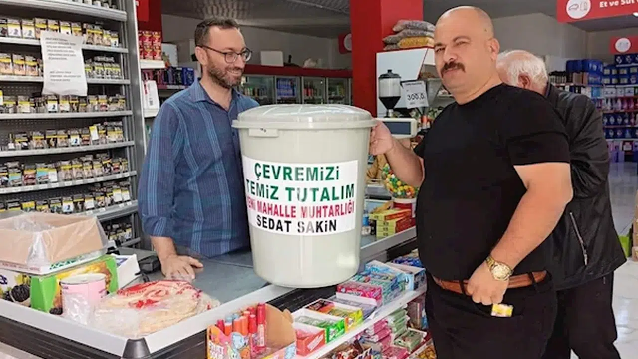 Ferhat DERVİŞOĞLU/REYHANLI(Hatay),(DHA)- HATAY’ın Reyhanlı ilçesinde, bir mahalle muhtarı temiz mahalle, temiz esnaf sloganı ile mahallesindeki esnafa çöp kovası dağıttı.