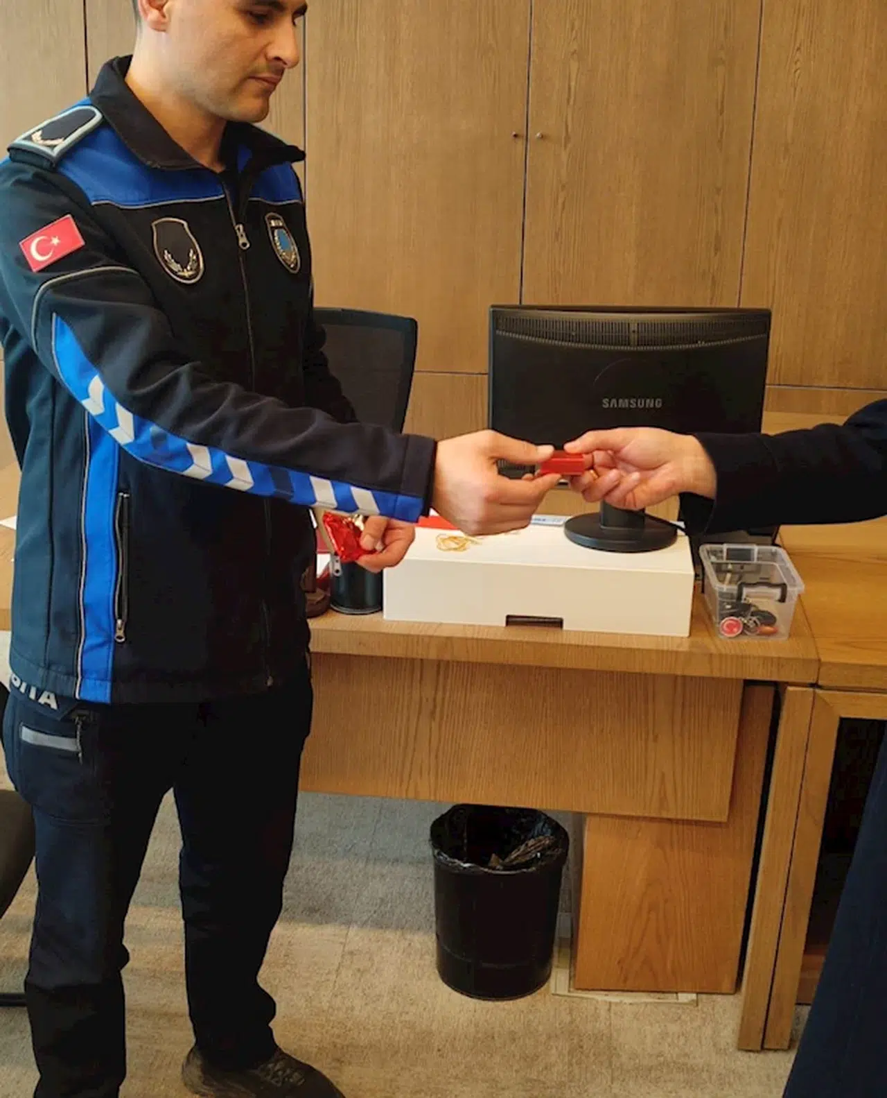 Olaya ilişkin yayınlanan haberleri gören Neşe Z., Zabıta Müdürlüğü’ne geldi. Altınların kendisine ait olduğunu söyleyen Neşe Z.’ye, Soner Aktepe’nin bulduğu kese teslim edildi. (DHA)