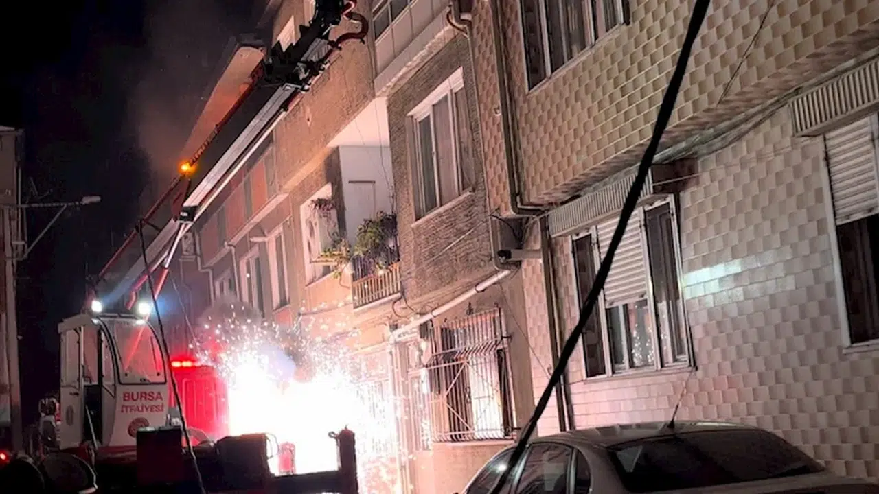 Yangın, saat 03.00 sıralarında Osmangazi ilçesi Başaran Mahallesi, Görgülü Sokak'taki 3 katlı apartmanın terasında çıktı. Alevlerin yükseldiğini gören mahalle sakinlerinin ihbarı üzerine olay yerine itfaiye, polis ve sağlık ekipleri sevk edildi. Katı saran alevler, apartmanın yakınındaki elektrik hattının kablolarına sıçradı. Hatta meydana gelen patlamalar ile birlikte yanan kablolar koptu. Bazı kablo parçaları, o sırada alevlere müdahale eden itfaiye ekibinin üzerine düştü.