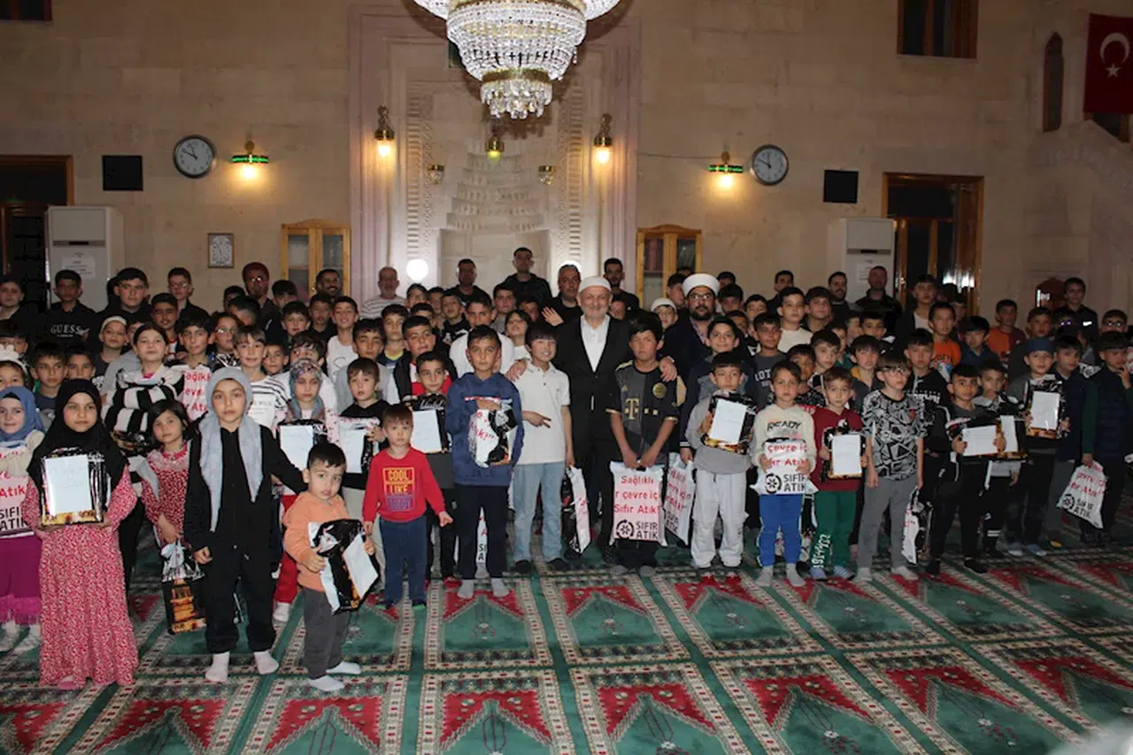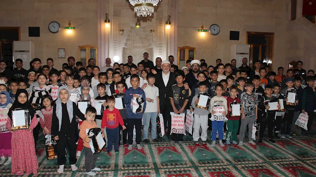 Teravih namazına gelen çocuklara, spor ayakkabısı hediye edildi