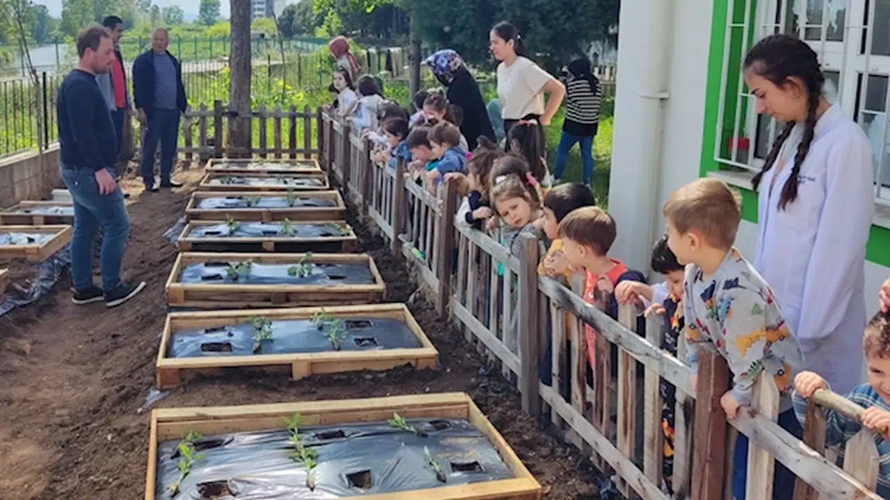 Terme Tarım ve Orman Müdürlüğünden yapılan açıklamaya göre, Zübeyde Hanım Anaokulu bahçesinde minik öğrencilerle birlikte gerçekleştirilen fide dikim etkinliğinde öğrenciler, domates, biber ve patlıcan gibi sebze fidelerini toprakla buluşturdu.