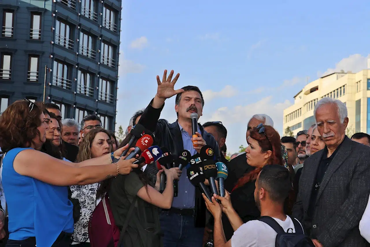 Hep beraber direnmeye kararlı olduklarını belirten TİP Genel Başkanı Erkan Baş, "Bu haksızlığa ve hukuksuzluğa başkaldıran, bu haksızlığa ve hukuksuzluğa boyun eğmeyen Kürt halkıyla dayanışma için İstanbul’dan geldim. Bu iktidar bölerek, parçalayarak bizi birbirimize düşmanlaştırarak kendi iktidar koltuğunda oturmaya çalışıyor. Ama şunu bilmenizi istiyorum. Kobani kumpas davasında da kayyum atamalarında da İstanbul’da da Edirne’de de Ankara’da da Mersin’de de Adana’da da Trabzon’da da Rize’de de Türkiye’nin dört bir yanında bu ülkenin devrimcileri, yurtseverleri, onurlu insanları, emekçileri, kaderlerini Kürt halkının kaderleriyle birleştirmiştir. Hep beraber direnmeye kararlıyız. Hep beraber mücadele etmeye kararlıyız. Kürt’ü ezip Türk’ü açlığa, sefalete, yoksulluğa mahkum eden bu anlayışa karşı kaderimizin ortak olduğunu bilerek, birlikte mücadele etmeye devam edeceğiz” dedi.