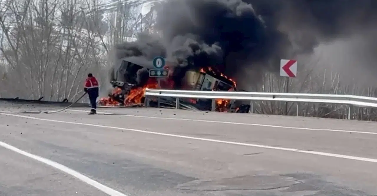 Kaza, saat 13.00 sıralarında Divriği-Kangal kara yolu Mursal Kavşağı'nda meydana geldi. Ekskavatör olarak tabir edilen iş makinesi yüklü 44 AHA 568 plakalı TIR, iddiaya göre freni tutmayınca şarampole girdi, üzerindeki iş makinesi devrilerek alev aldı. Alevler kısa sürede TIR'ı da sardı. Kazada U.A. (30), Ö.G. (32) ve Y.K (34) yaralandı. 112 Acil Çağrı Merkezi’ne yapılan ihbarla bölgeye sağlık, jandarma ve itfaiye ekipleri sevk edildi. Yaralılar, ambulansla Divriği Sadık Özgür Devlet Hastanesi'ne kaldırıldı. Yaralılardan U.A. ilk müdahalesinin ardından Sivas Cumhuriyet Üniversitesi Tıp Fakültesi Hastanesi'ne sevk edildi. Kaza sonrası TIR'da çıkan yangın Divriği Belediyesi itfaiye ekiplerinin 1 saatlik çalışmasıyla söndürüldü.
