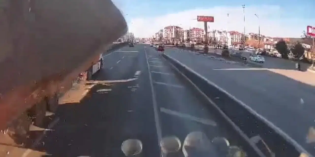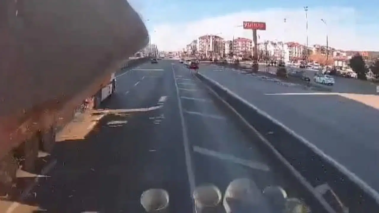 Erkan ALTUNTAŞ/AKSARAY,(DHA)-AKSARAY'da TIR'ın dorsesinde yüklü yonca balyalarının devrilip, yola savrulduğu anlar, başka bir aracın kamerasına yansıdı.
