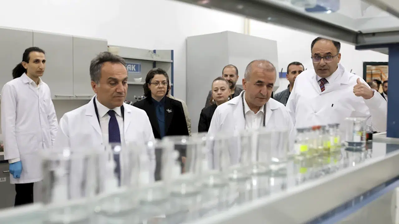 Laboratuvarda Vali Numan Hatipoğlu ve Rektör Prof. Dr. Fatih Yılmaz incelemede bulundu.