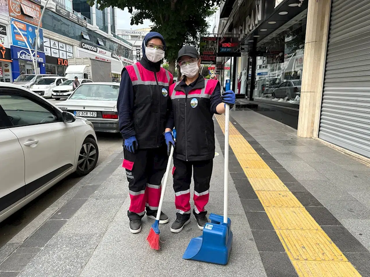 Belediye tarafından hayata geçirilen projeyle işbaşı yapan kadın işçiler, cadde ve sokakların temizliğini gerçekleştiriyor.