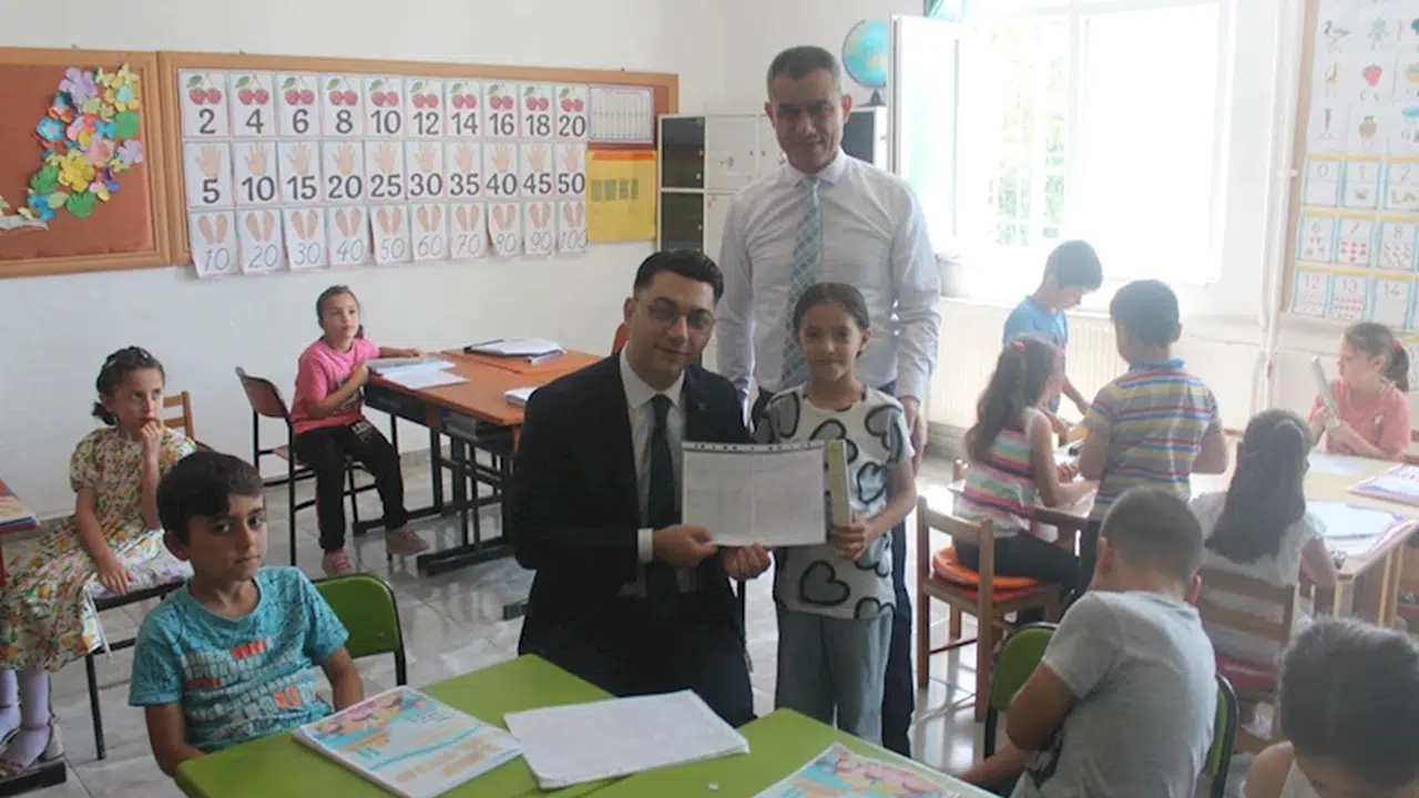 Yeşilyurt ilçesinde Kaymakam Vekili Fatih Döner, İlçe Milli Eğitim Müdürü Nihat Aymak ile Ekinli Şehit İdris Kurt İlkokulu, Büget ve Çerkezdanişment ilkokullarında karne dağıttı.