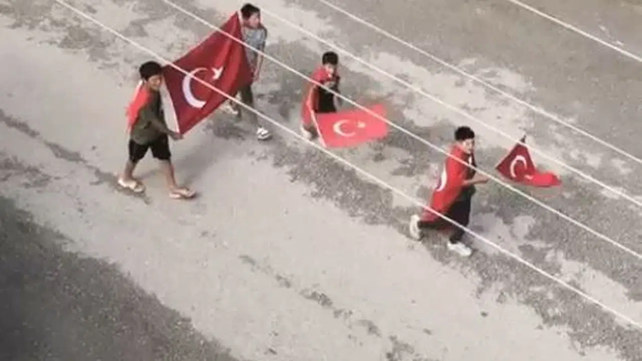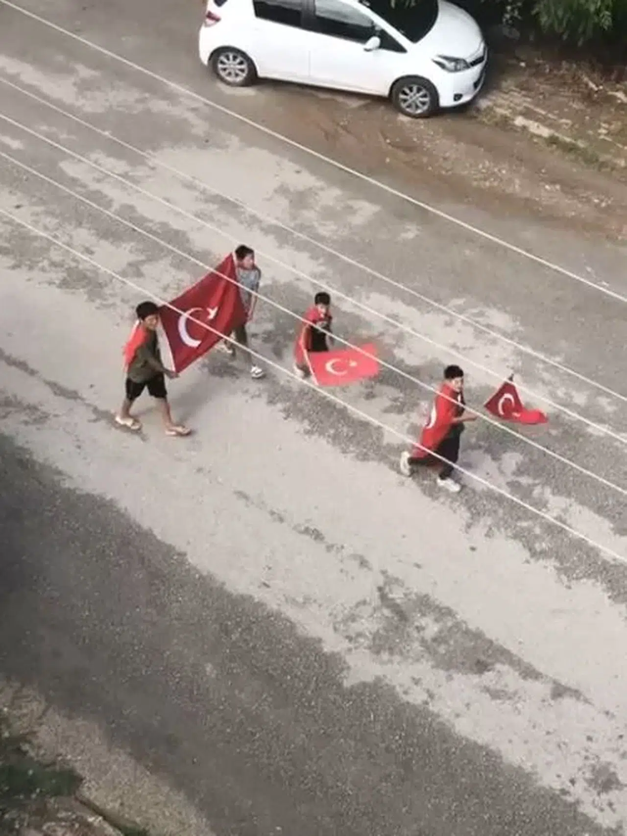 Tokat'ta 4 çocuk bayrak açıp, sokak sokak gezerek 'Şehit' türküsü söyledi; o anlar kamerada