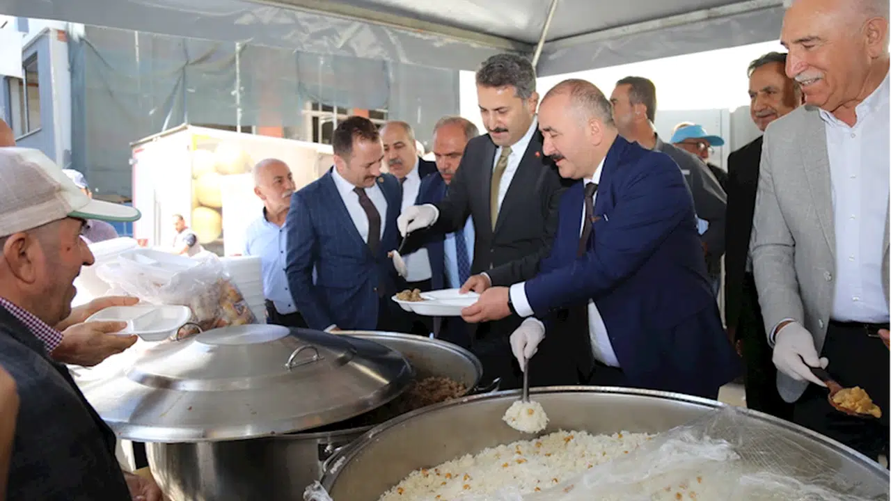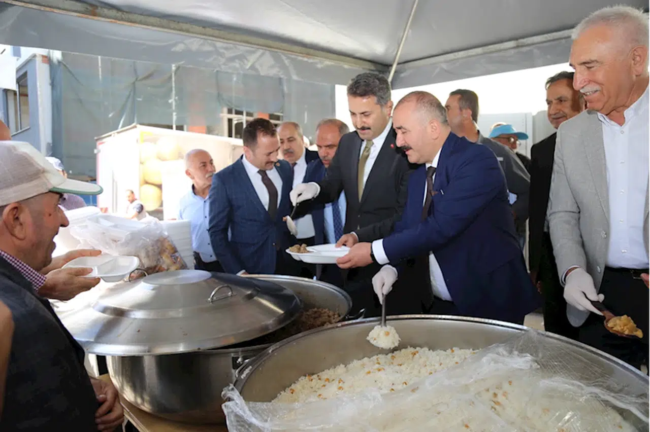 Kurulan sofralarda protokol, esnaf ve vatandaşlar birlikte ahi pilavı yedi.
