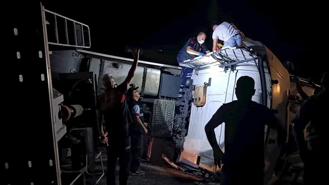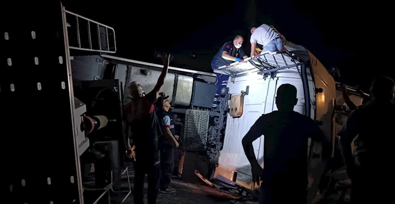 Tokat'ta devrilen ayçiçeği yüklü tırın sürücüsü yaralandı