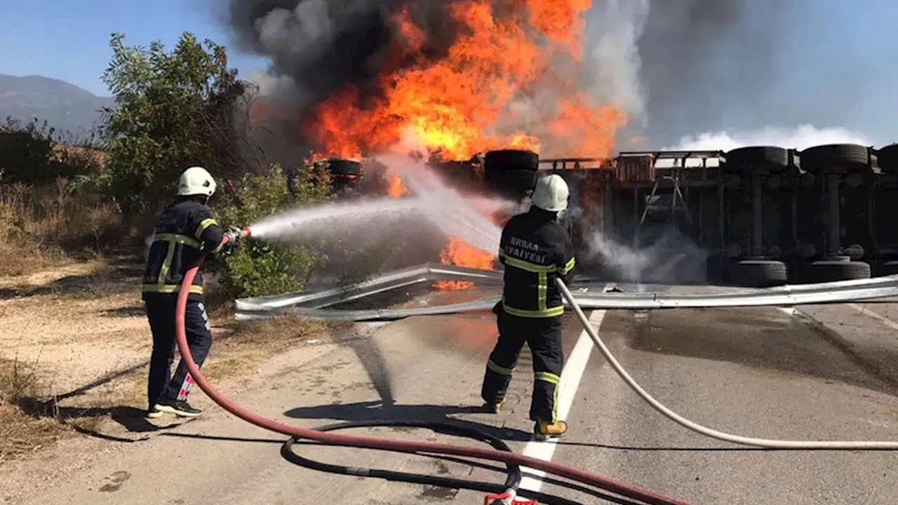 Alev alan tırın sürücüsü araç içerisinde yanarak hayatını kaybetti.