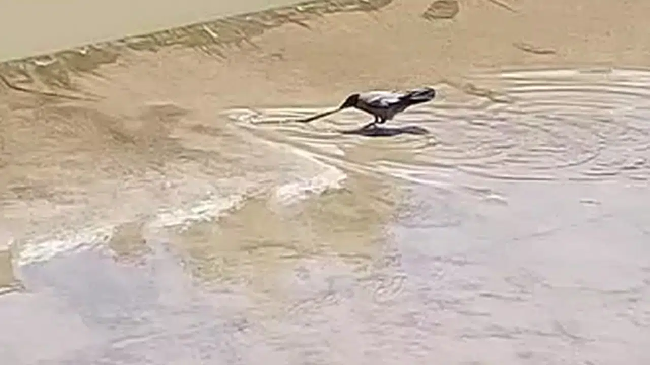 Fatih YILMAZ/TOKAT,(DHA)-TOKAT’ta Yeşilırmak’ta yılanı yakalamaya çalışan karga cep telefonu ile görüntülendi.