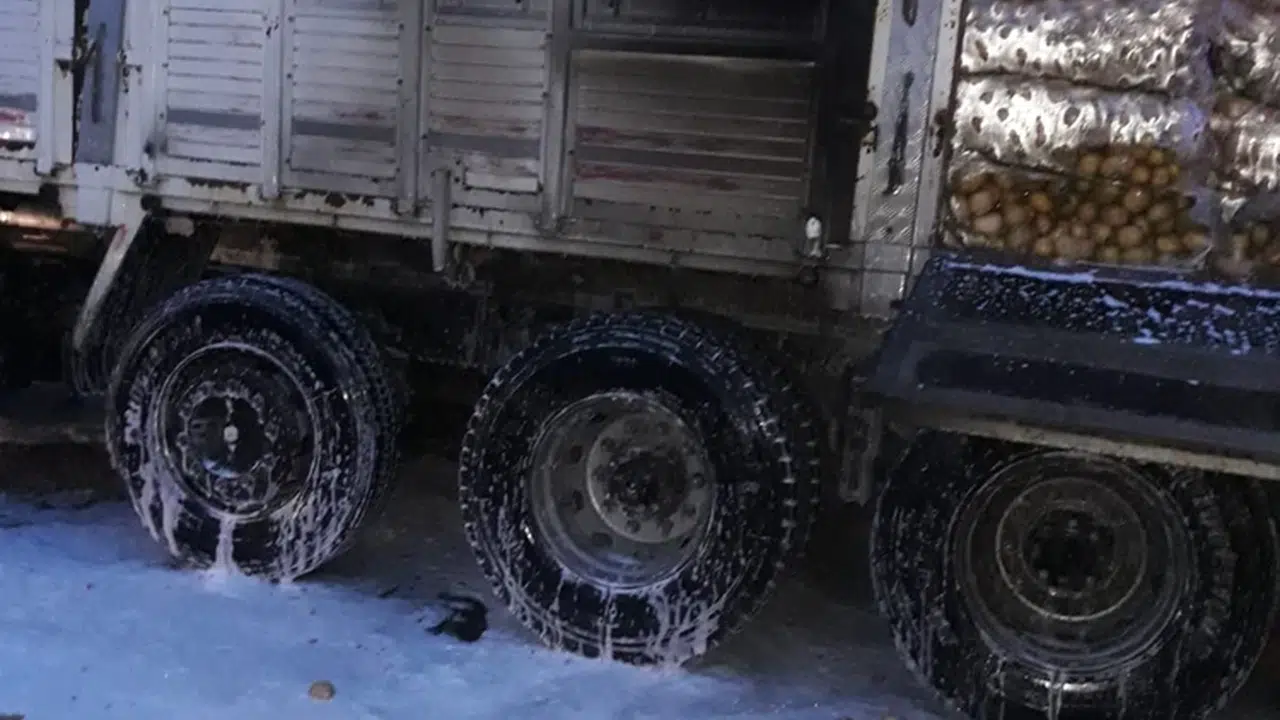 Niksar ilçesi sebze halinde, H.T'ye ait 60 NG 210 plakalı, patates yüklü tırda henüz belirlenemeyen nedenle yangın çıktı.
