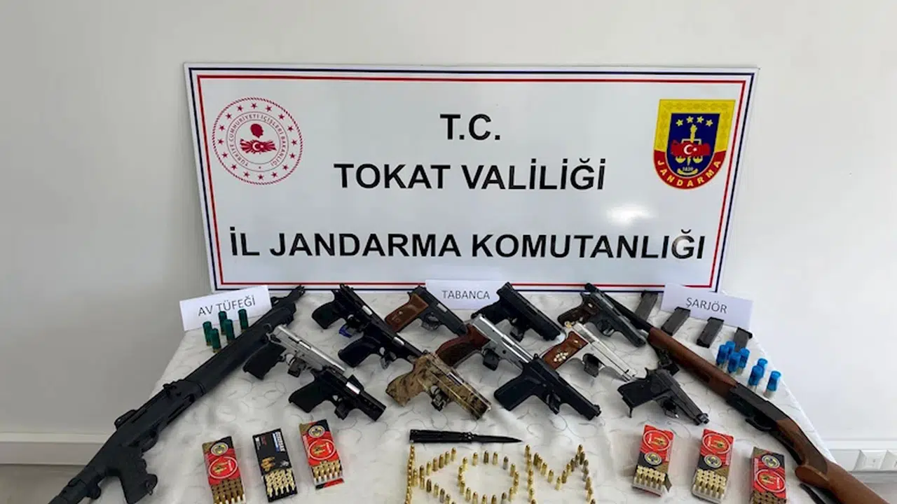 Tokat İl Jandarma Komutanlığı ekiğleri, Turhal İlçesi ve İstanbul'da silah ve mühimmat kaçakçılığı yapan şüphelilere yönelik operasyon düzenlendi. Düzenlenen operasyonda yapılan aramalarda, 14 ruhsatsız tabanca, 2 av tüfeği, 7 tabanca şarjörü, 433 tabanca fişeği ele geçirildi. Operasyonda gözaltına alınan 14 kişinin ise jandarmadaki sorguları devam ediyor. (DHA)