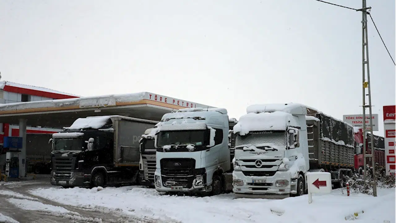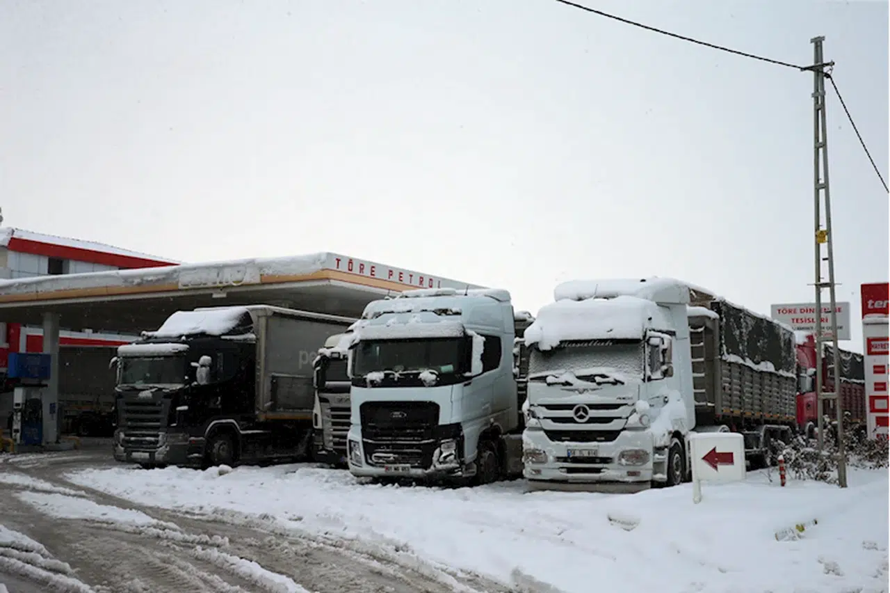Polis ekipleri, yol güzergahında dün kar yağışı nedeniyle tesislerde bekletilen çekici ve tırların çıkışına kontrollü olarak izin verdi.