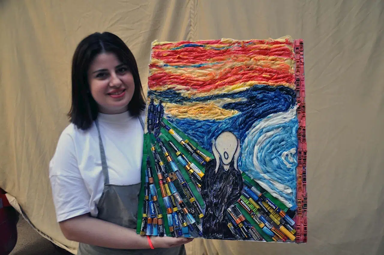 Ferhat DERVİŞOĞLU/REYHANLI (Hatay), (DHA)- HATAY'ın Reyhanlı ilçesinde üniversite öğrencisi Dilara Altınorak Matracı (24), topladığı atık malzemeler ile ünlü ressamların tablolarını yapıyor.