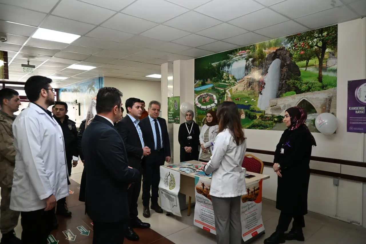 Tortum'da 4 Şubat Dünya Kanser Günü etkinliği düzenlendi. Belediye Başkanı Yiğider ve Kaymakam Başoğlu, hastaneyi ziyaret ederek tedavi görenlere destek verdi ve sağlık çalışanlarına teşekkür etti. Farkındalığın önemi vurgulandı, hastalara acil şifalar dilendi.