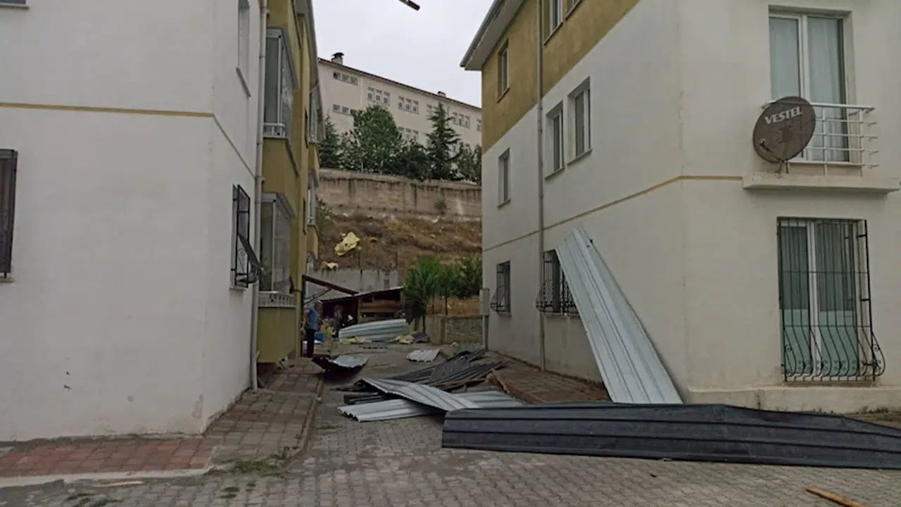 Tosya'da fırtına etkili oldu; lisenin çatısı uçtu, o anlar kamerada