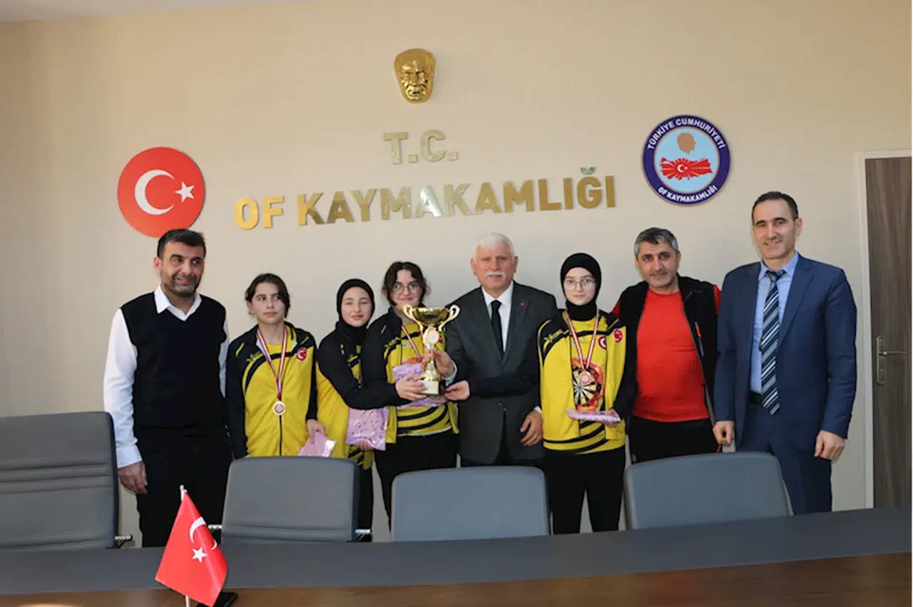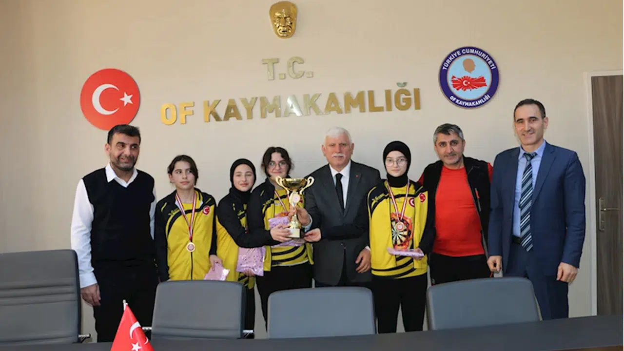 Yıldız kızlar ve yıldız erkekler kategorilerinde şampiyon olan okulun Müdürü Mustafa Akyıldız, Beden Eğitimi Öğretmeni Mahmut Karadağ ve öğrenciler, Of Milli Eğitim Müdürü İdris Kabahasanoğlu'nu ziyaret etti.