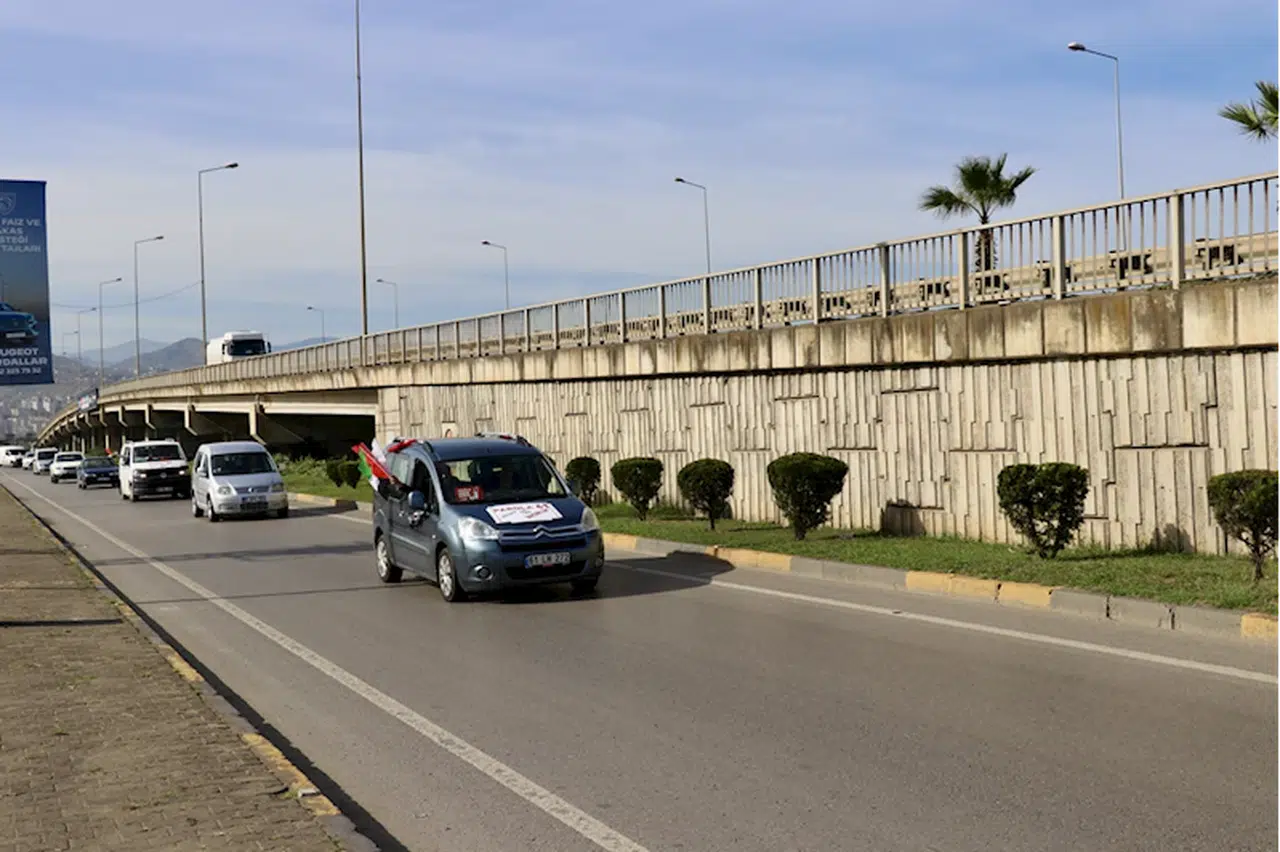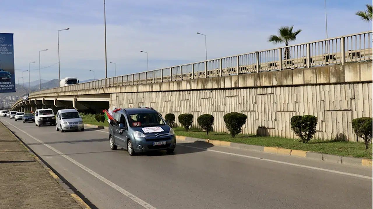 Dua edilmesinin ardından Türk ve Filistin bayraklarıyla süslenen 15 araçlık konvoy, İncirlik Üssü'ne hareket etti.