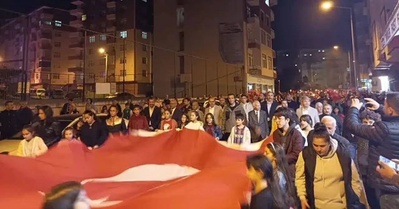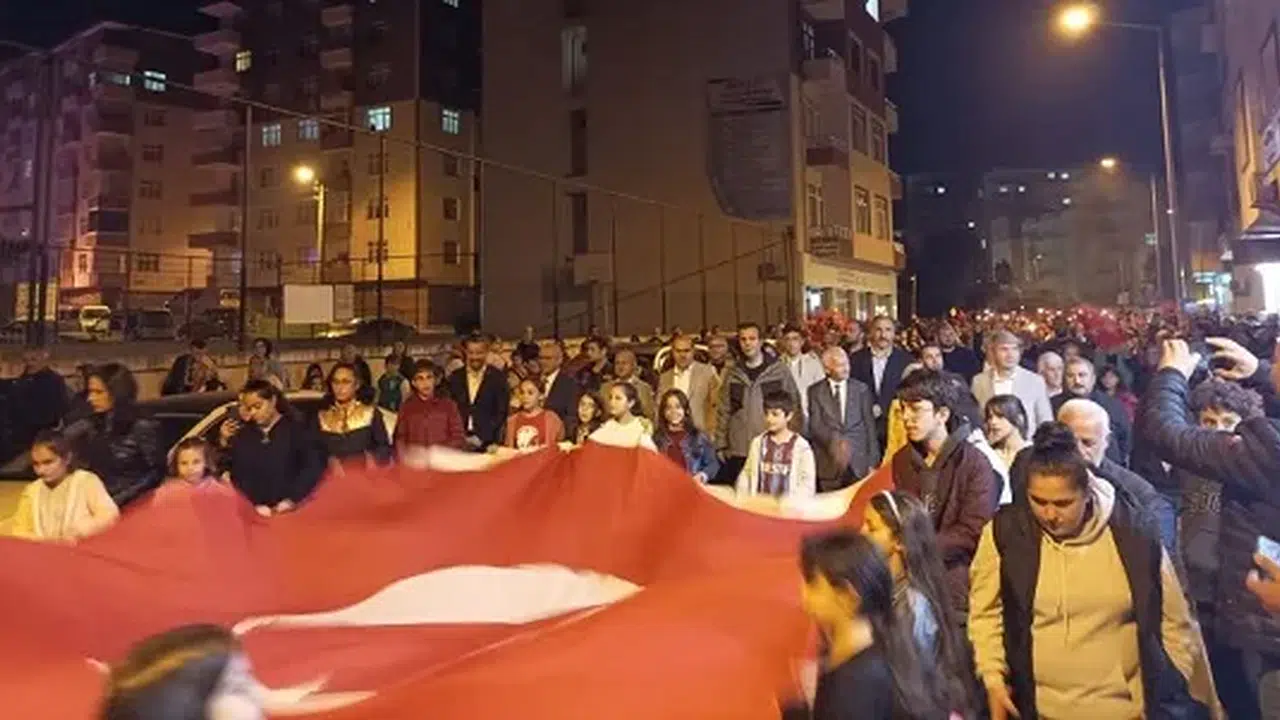 Cumhuriyetin 100. yılı etkinlikleri çerçevesinde Trabzon'un Beşikdüzü ilçesinde gerçekleştirilen yürüyüş, ilçenin Denizli Mahallesi Muhtarı Yusuf Keleş'in sert sözleriyle yankı buluyor.
