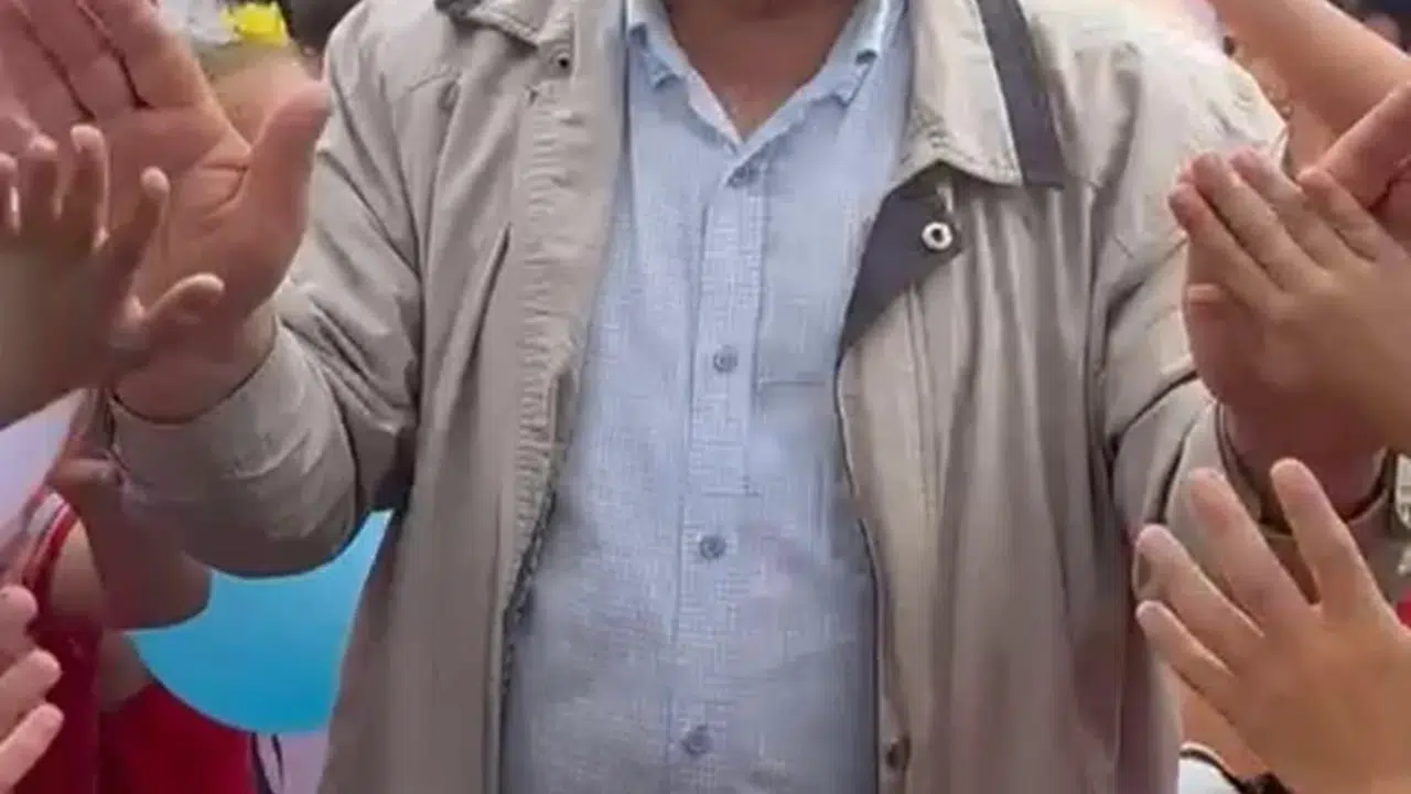 Öğrenciler, son derse girmek için okula gelen Topal'ı bahçe kapısında ellerinde balonlarla karşıladı.