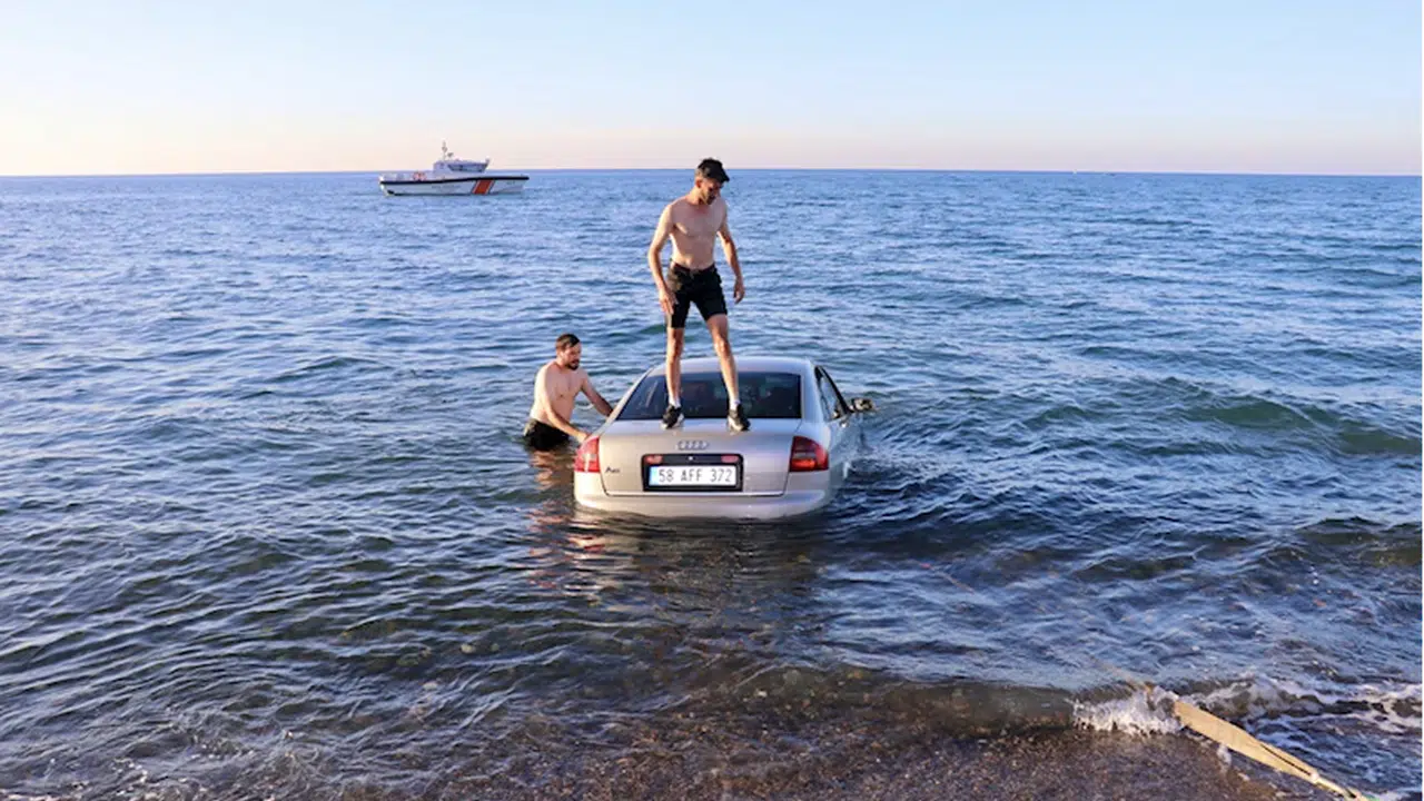 Otomobil ise vinç ve çekici yardımıyla denizden çıkarıldı.