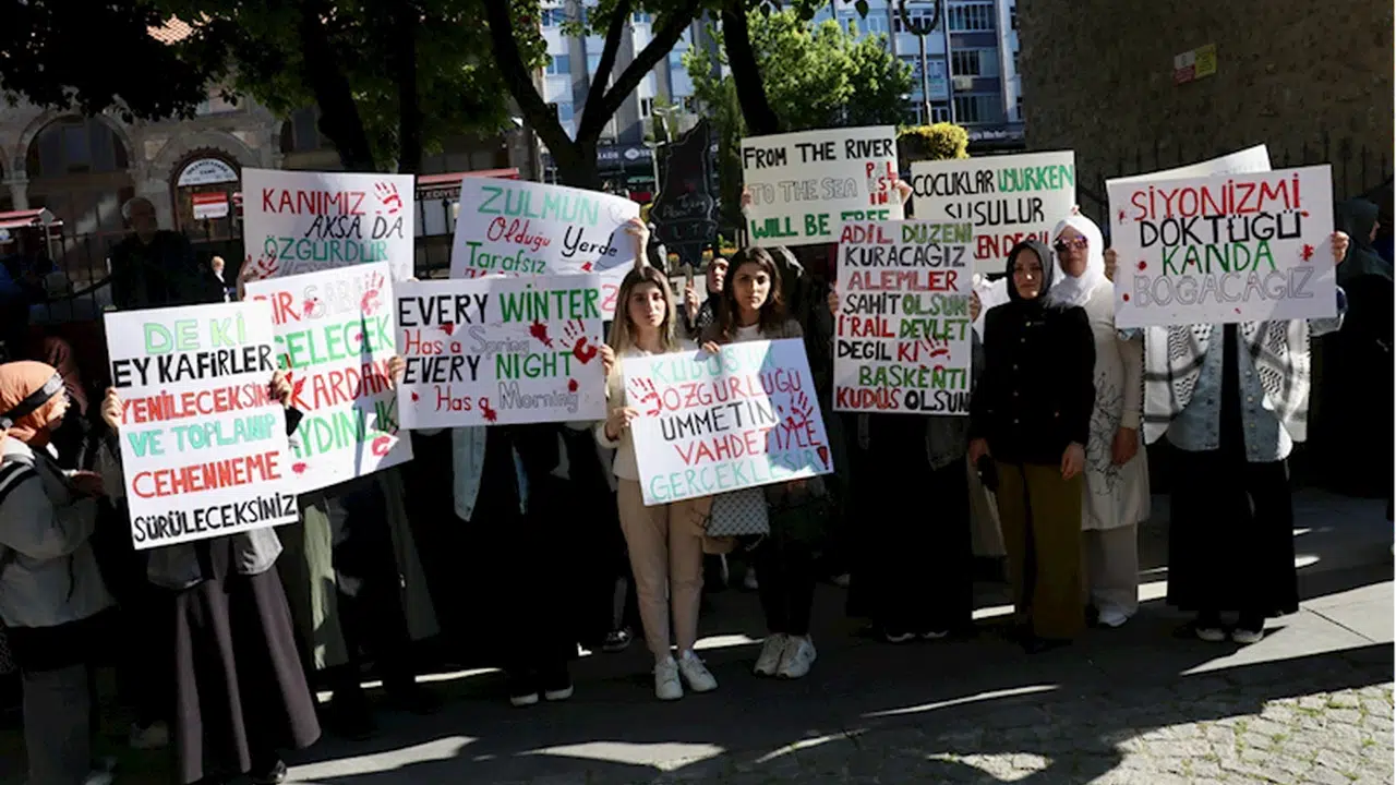 İHH İnsani Yardım Vakfı ve Özgür Aksa Trabzon Platformunca gerçekleştirilen organizasyonda, Ortahisar ilçesindeki İskenderpaşa Camisi önünde toplanan grup, flamalar, Türk ve Filistin bayrakları eşliğinde Kahramanmaraş Caddesi'ndeki Ziraat Bankası önüne yürüdü.
