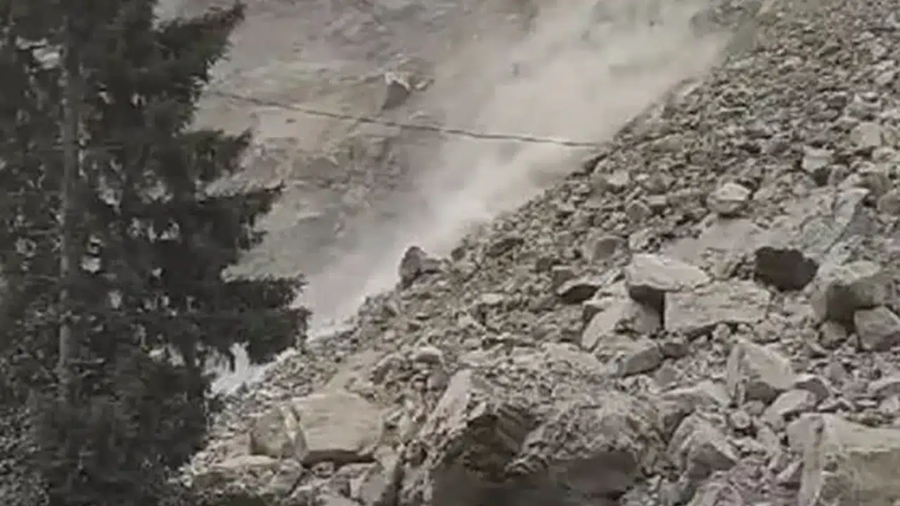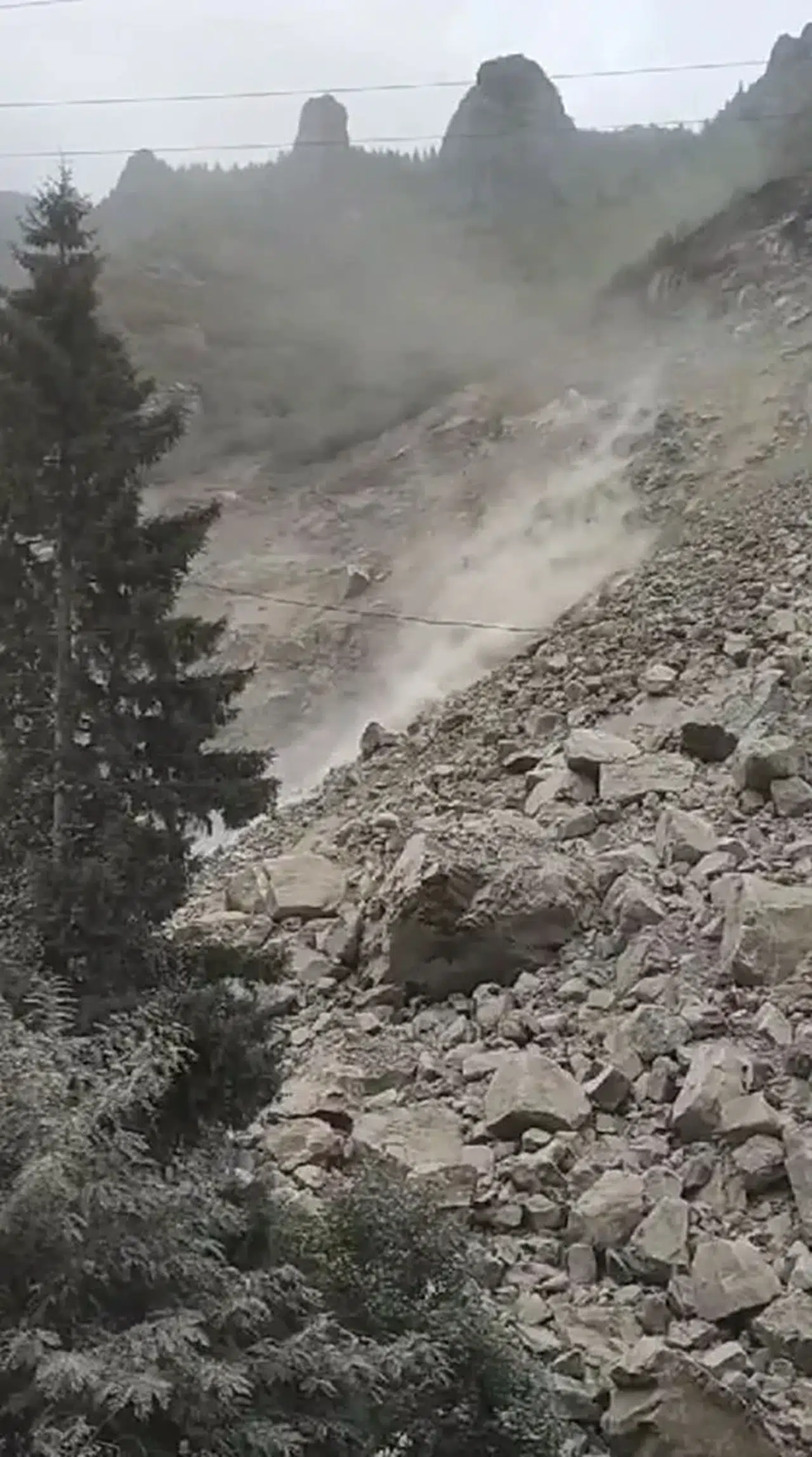 Dik yamaçtan kopan dev kaya parçalarının düşüş anları, bir vatandaşın cep telefonu kamerasıyla kaydedildi. Görüntüler, o anların dehşetini yansıtıyor.