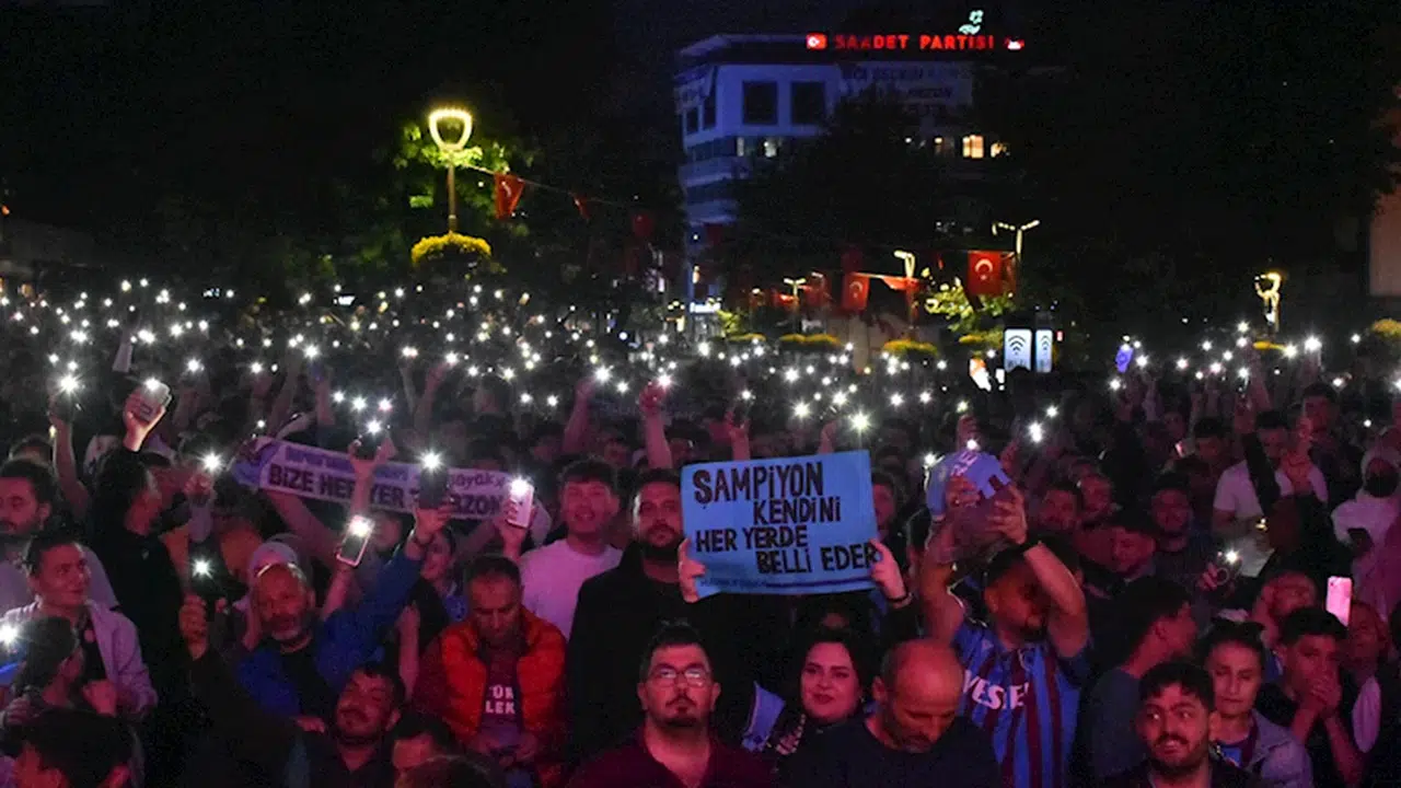 Bordo-mavili taraftarlar, maç saatine kısa süre kala Trabzon Büyükşehir Belediyesi tarafından 15 Temmuz Şehitleri ve Hürriyet Parkı'na kurulan dev ekran önünde bir araya geldi.