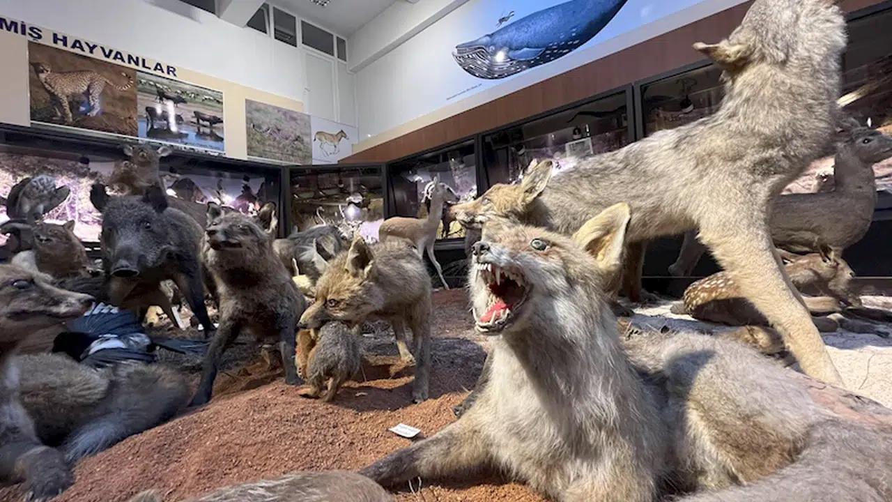 150 metrekarelik bir alandan oluşan müzenin en dikkat çeken parçaları ise trafik kazasında telef olan, arazi çalışmaları sırasında ölü bulunan ve hayvanat bahçelerinde herhangi bir nedenle ölen hayvanlar. Ayı, kurt, tilki, geyik, pelikanın da aralarında olduğu hayvanların tahnit edilerek muhafaza edildiğini ve düzenli olarak bakımlarının yapıldığını söyleyen Rahşen Kaya, şöyle konuştu: "Buradaki örneklerin hiçbiri tarafımızdan öldürülmüş örnekler değil. Bizim kendi çalışmalarımız sırasında, doğada ölü olarak bulduğumuz, örneğin trafik kazası, mesela şu alanda gördüğünüz hayvanların belki yüzde 90'ı trafik kazası sonucunda ölen hayvanlar. Mesela tilkilerin büyük bir kısmını, eğer sağlıklı bir şekildeyse tabii bir ön değerlendirilmesi yapılıyor, tarafımızdan getirilip, tahnit adını verdiğimiz işlemlerin yapılmasıyla elde edilmiş bir koleksiyon. Mesela alanda 2 farklı duruşta olan ayı görebilirsiniz. Geyikler, yabani kediler gibi, bunların tamamı dediğim gibi trafik kazası, araba çarpması sonucunda bize ulaştırılan veyahut da kendimizin bizzat bulduğu, bir zamanlar tabii bu anlamda Milli Parklar da bizi destekliyordu ama sonra onlar kendi bünyelerinde birtakım koleksiyon oluşturduğu için şu an çok fazla iletişim halinde değiliz ama işte civar köylerdeki vatandaş da bu anlamda destek oluyor. Veyahut da öğrencilerimiz ölü buldukları ve sağlık açısından sıkıntısız olan, otopsileri yapılmış hayvanlar, tahnit işlemine tabi tutulur. Tahnit işlemleri çok düzgün bir şekilde yapılması gerekiyor ki uzunca yıllar bu şekilde bozulmadan koruyabilesiniz. Derinin işlenmesi yöntemi gibi kısaca değerlendirebiliriz. Ve düzenli olarak da ilaçlamalarını yaptığınız sürece koleksiyonu kolay kolay kaybetmiyorsunuz. Dolaplarda etil alkol içerisinde muhafaza edilen amfibi türleri ve sürüngen türleri var. Biraz da omurgasız türleri var alanda. Bunların da alkollerini işte belirli aralıklarla değiştirdiğiniz zaman, düzenli olarak, yüzlerce yıl belki de bunları muhafaza etme şansına sahipsiniz ki biz kendi çalışmalarımızda da sıvı içerisinde muhafaza ettiğimiz için örnekleri, hiçbir şekilde kayıp yaşamadan, uzunca yıllar muhafaza edebiliyorsunuz."