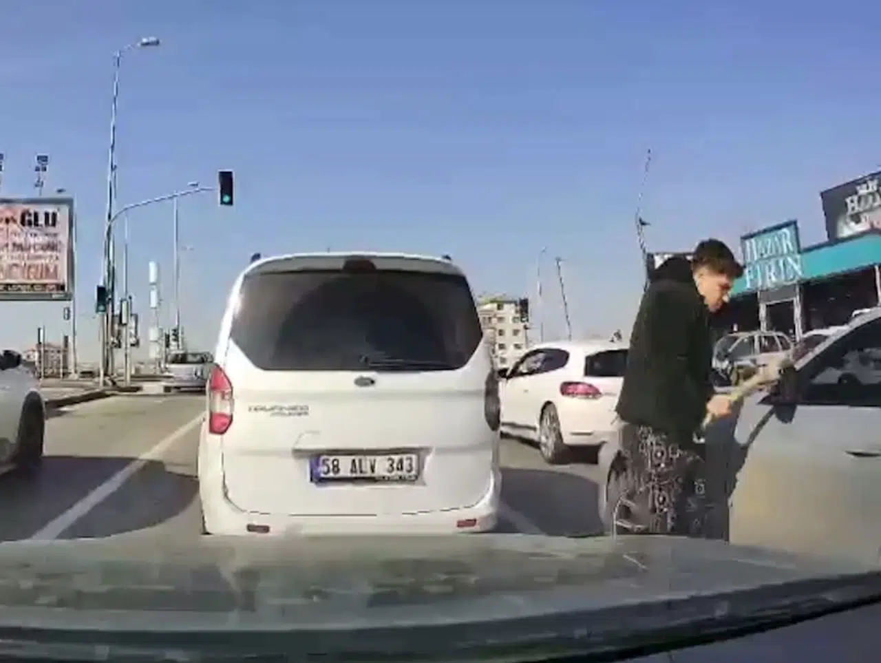 Trafikte tartıştığı kişinin aracına beyzbol sopası ile saldırdı; o anlar kamerada