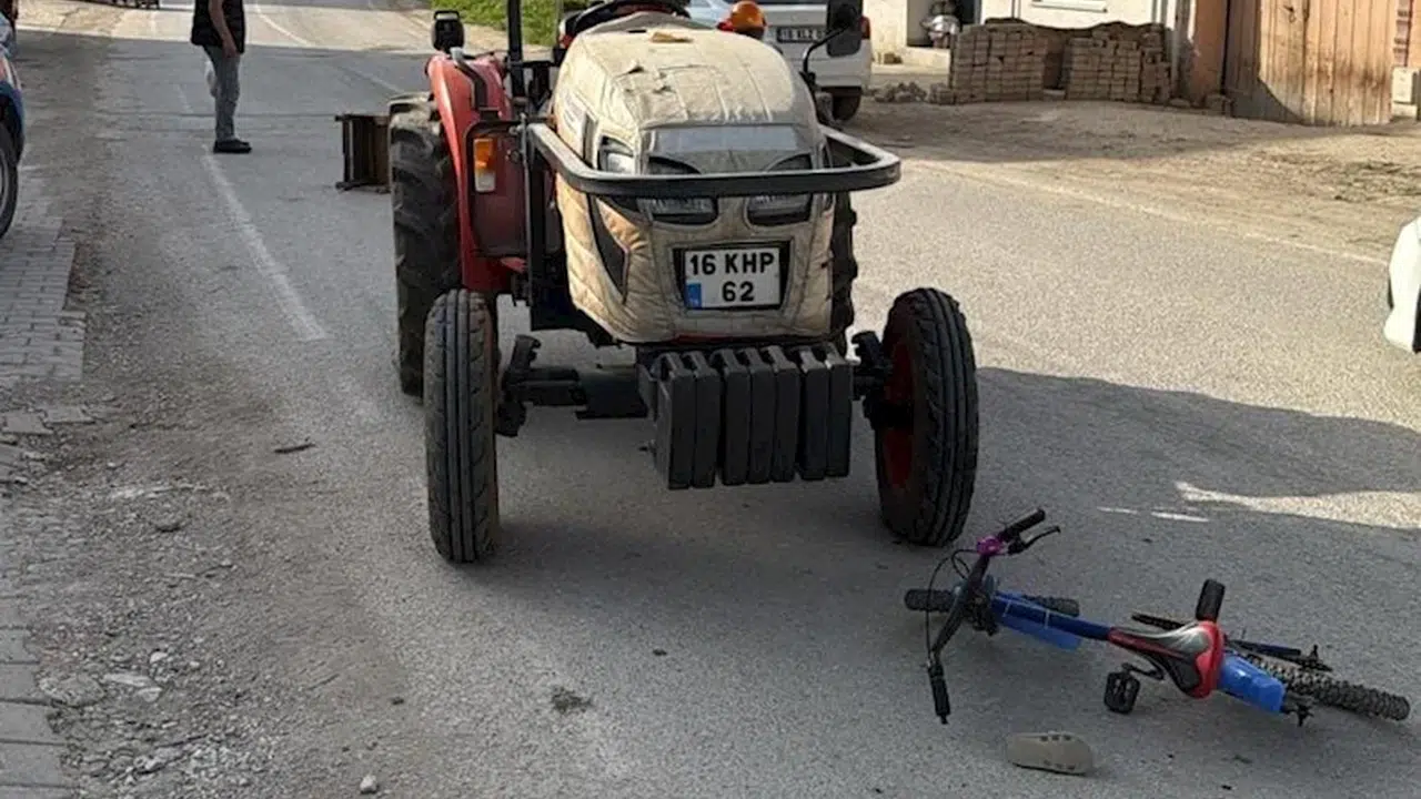 Kaza saat 17.30 sıralarında İnegöl'ün kırsal Deydinler Mahallesinde meydana geldi. İddiaya göre caddede bisikletiyle gezen Suriyeli uyruklu Muhammed A.’ya, Hamza Y. (34) yönetimindeki 16 KHP 62 plakalı traktöre çarptı. Çarpmanın etkisiyle devrilen bisikletten düşen çocuk yaralandı. İhbar üzerine olay yerine sağlık ve jandarma ekipleri sevk edildi. Ekiplerin olay yerindeki ilk müdahalesinin ardından yaralı çocuk İnegöl Devlet Hastanesine kaldırıldı.