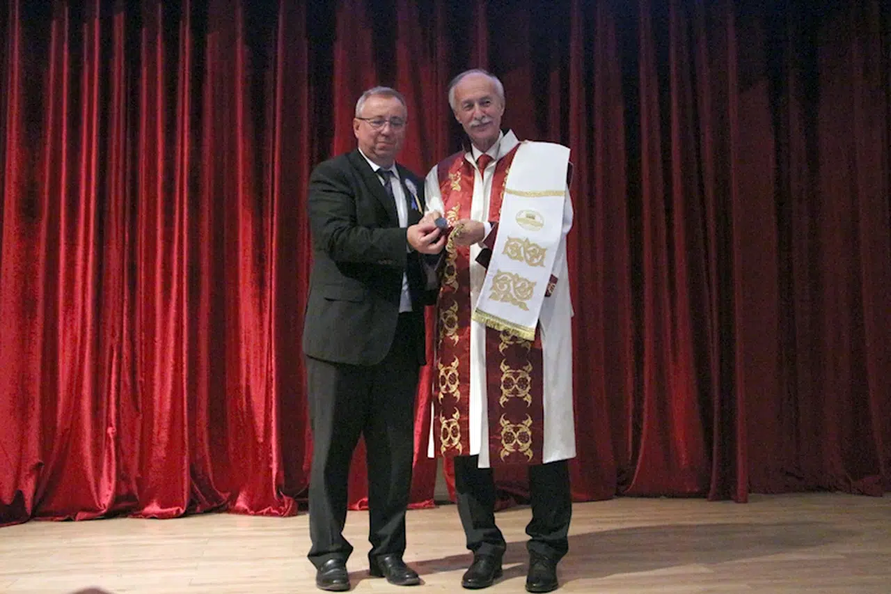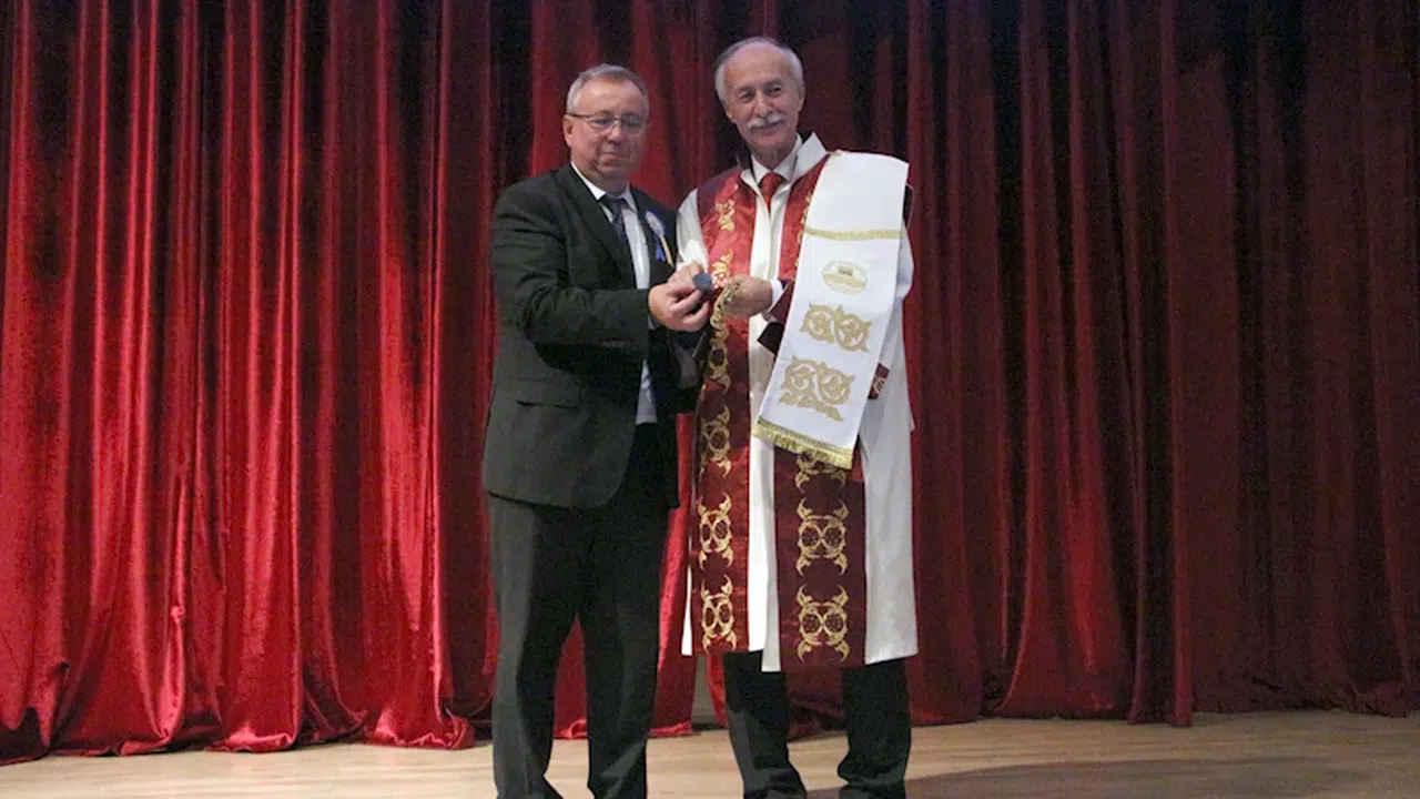 Konuşmaların ardından Prof. Dr. Erhan Tabakoğlu, yeni rektör Prof. Dr. Mustafa Hatipler'e cübbesini giydirerek, rektörlük mührünü teslim etti. (DHA)