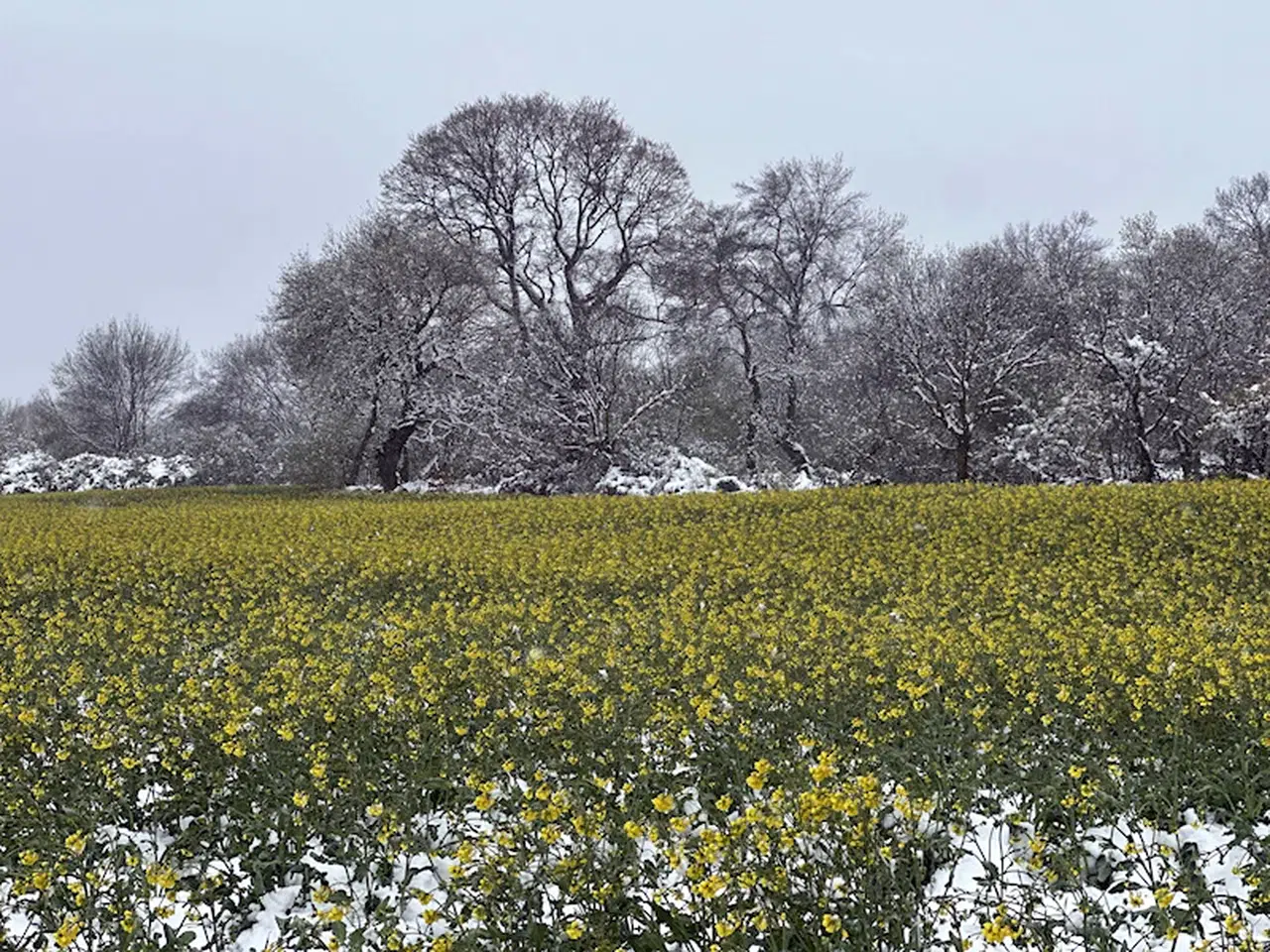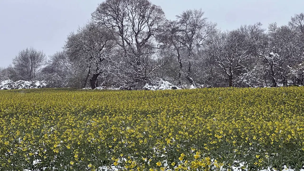 Olgay GÜLER-Umut IŞIK/EDİRNE, (DHA)- TRAKYA'da ayçiçeğine alternatif olan ve çiftçinin 'sarı altın çiçek' olarak adlandırdığı kanola ekilen tarlalar sarıya bürünürken, Edirne'de 22 yıl aradan sonra nisan ayında yağan kar yağışıyla birlikte bölge beyaz örtüyle kaplandı.