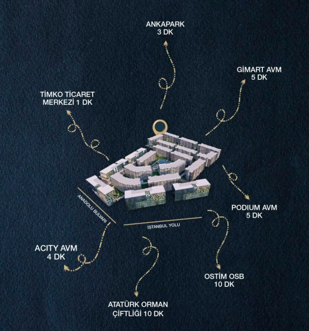 Ostim OSB'ye ise sadece 10 dakikalık mesafede yer alıyor.