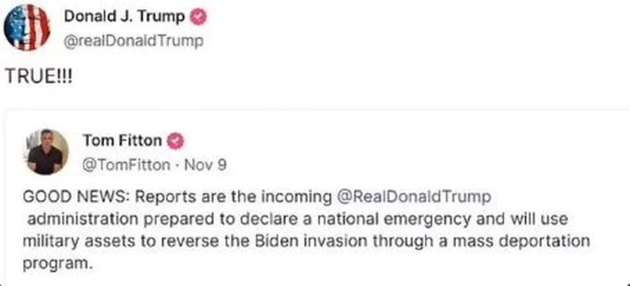 ABD’nin 47’nci başkanı Donald Trump Ulusal Acil Durum ilan ederek orduya göçmenleri sınır dışı etme talimatı vereceğini doğruladı. Trump mesajında 'Judicial Watch’ Başkanı Tom Fitton'un paylaştığı ''Trump, ulusal acil durum ilan ederek mültecilerin toplu sınır dışı edilmesinde orduya başvuracak'' sözlerini alıntılayarak ''Doğru'' dedi.