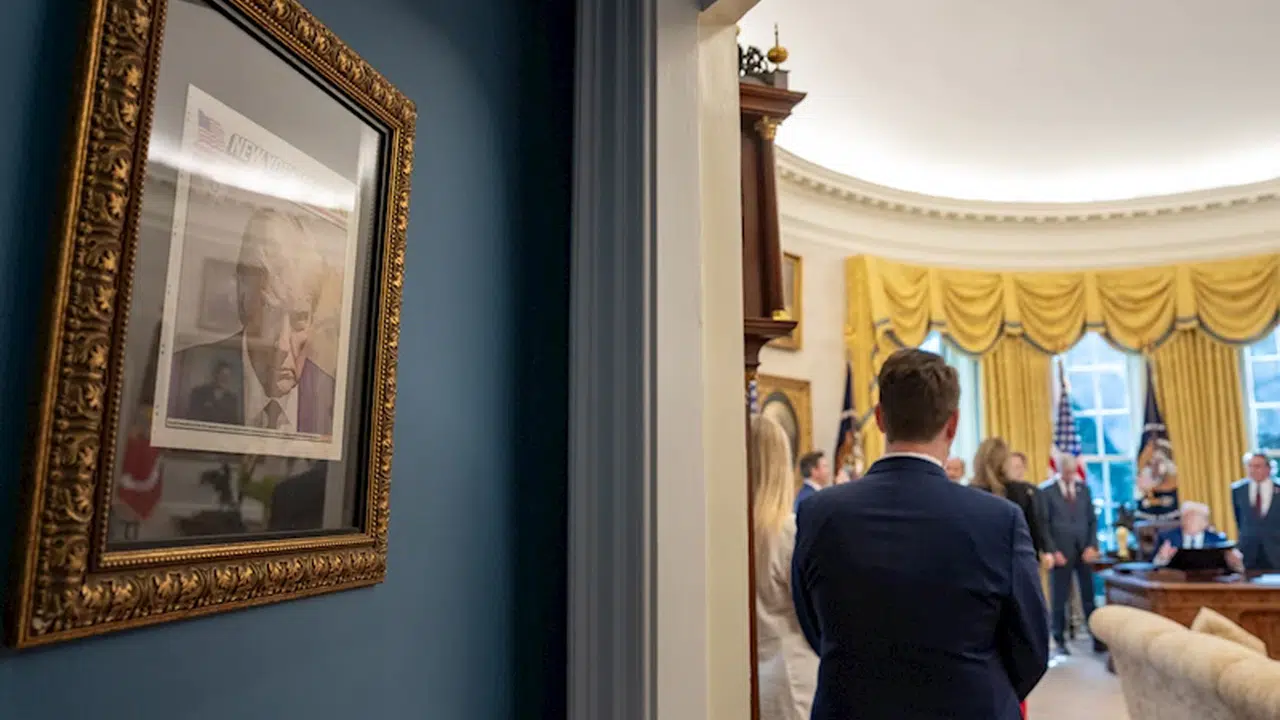 Trump'ın sabıka fotoğrafı Oval Ofis'in girişine asıldı