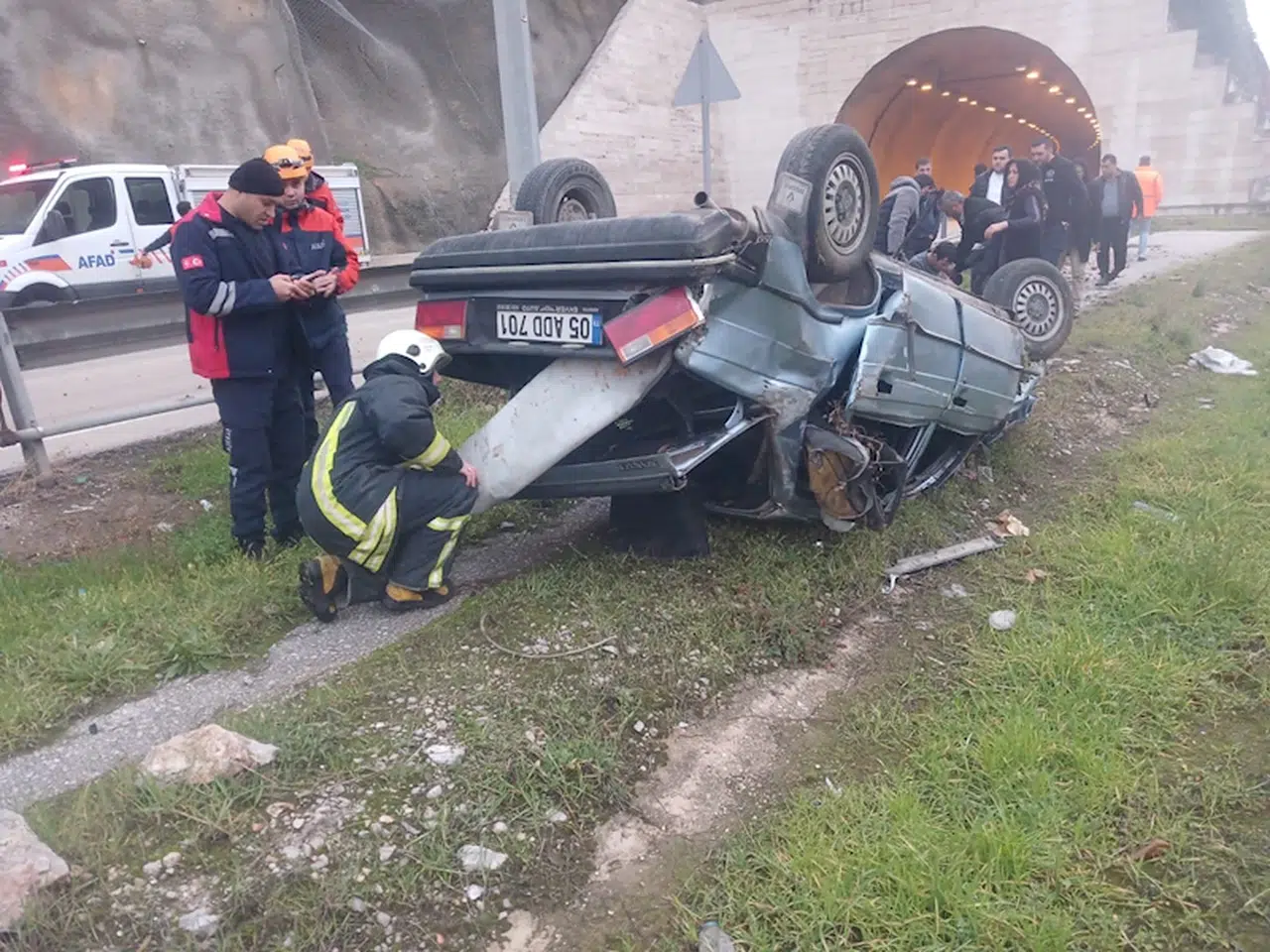 Kaza, saat 08.00 sıralarında, Yeşil Yenice mevki Akdağ Tüneli çıkışında meydana geldi. Hakan P.’nin kontrolünü yitirdiği 05 ADD 701 plakalı otomobil, takla atarak bariyerleri aşıp, boş arazide ters döndü. Kazada, otomobilin sürücüsü yaralandı. İhbar üzerine olay yerine polis, itfaiye, AFAD ve sağlık ekipleri sevk edildi. Yaralı, sağlık ekiplerinin ilk müdahalesinin ardından kaldırıldığı Amasya Üniversitesi Sabuncuoğlu Şerefeddin Eğitim ve Araştırma Hastanesi’nde tedaviye alındı. Kazaya ilişkin soruşturma başlatılırken, olay anı ise tünelin güvenlik kamerasına yansıdı. (DHA)