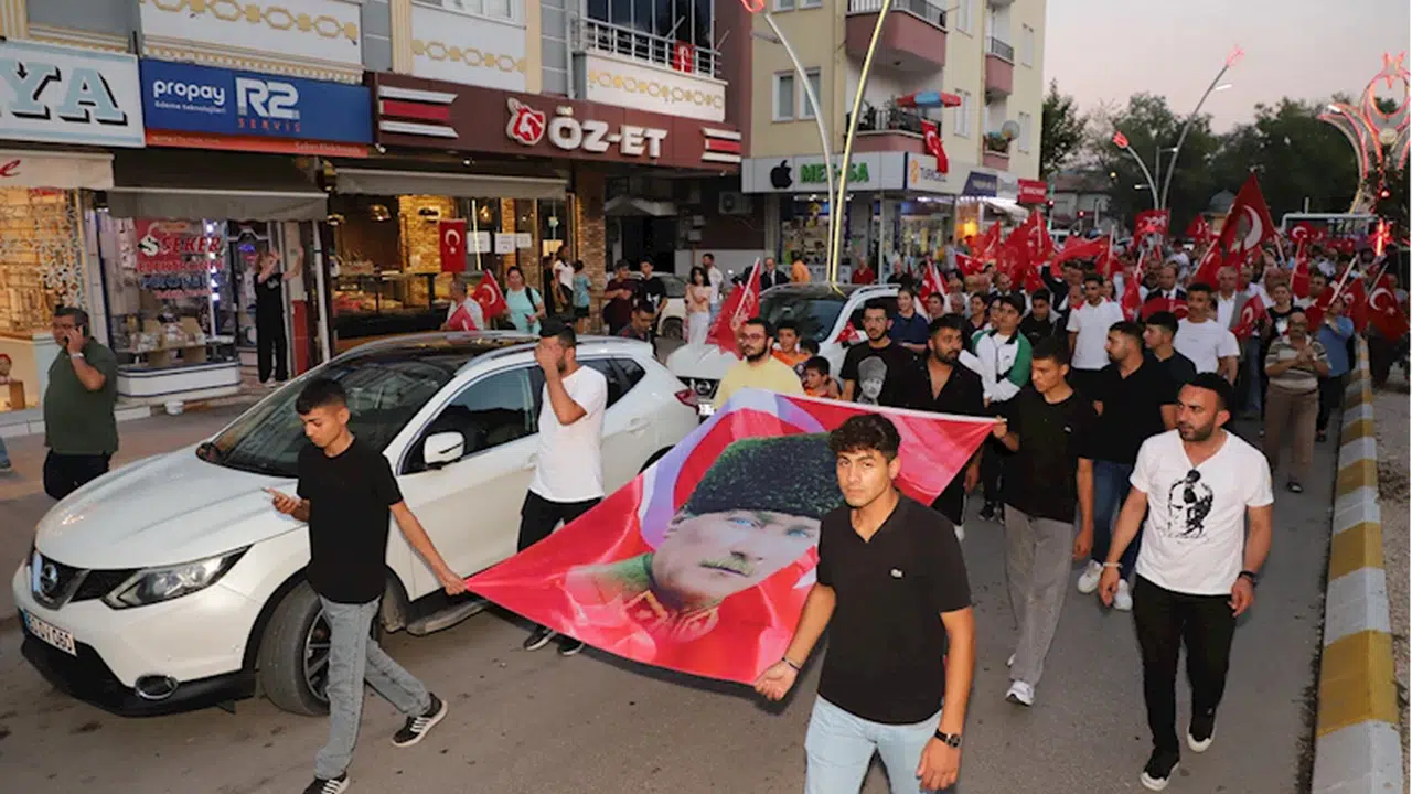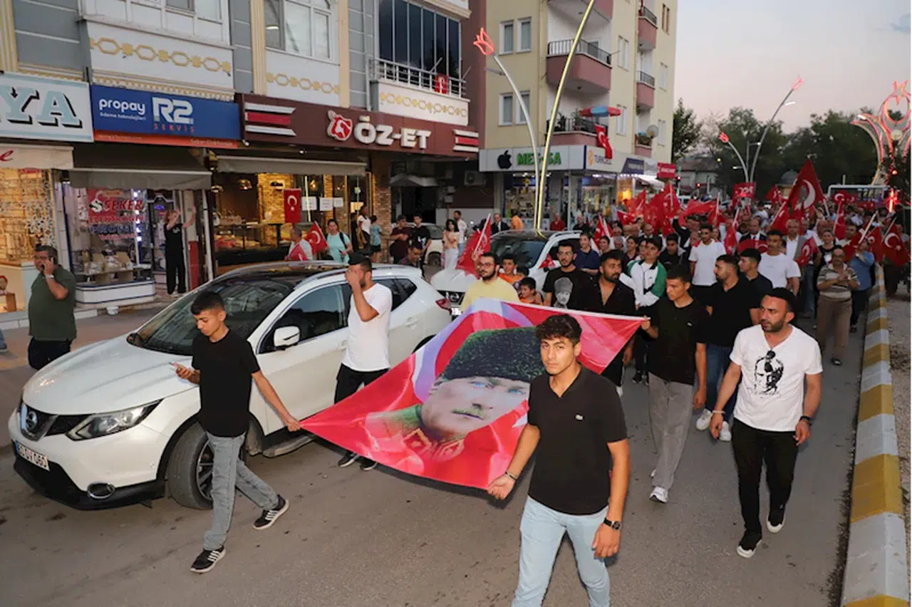 15 Temmuz Şehitler Parkı'nda toplanan vatandaşlar, ellerinde Türk bayraklarıyla Turgut Özal Caddesi üzerinden millet bahçesine kadar yürüdü.